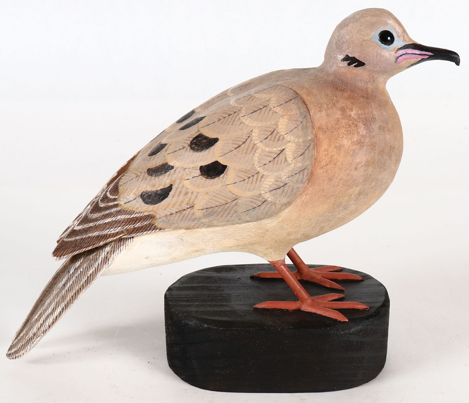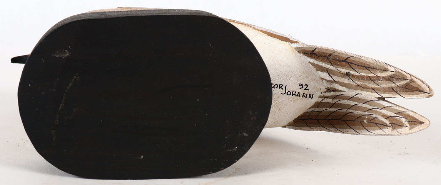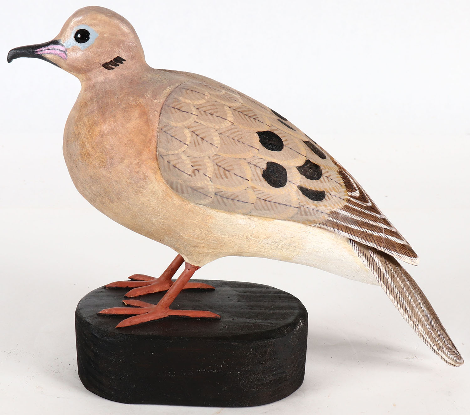 Morning Dove by Stor Johann, GE, solid wood, excellent original paint, on stand, signed on bottom, 9'' OAL. Grade: Excellent ++ - Value: 20 to 60