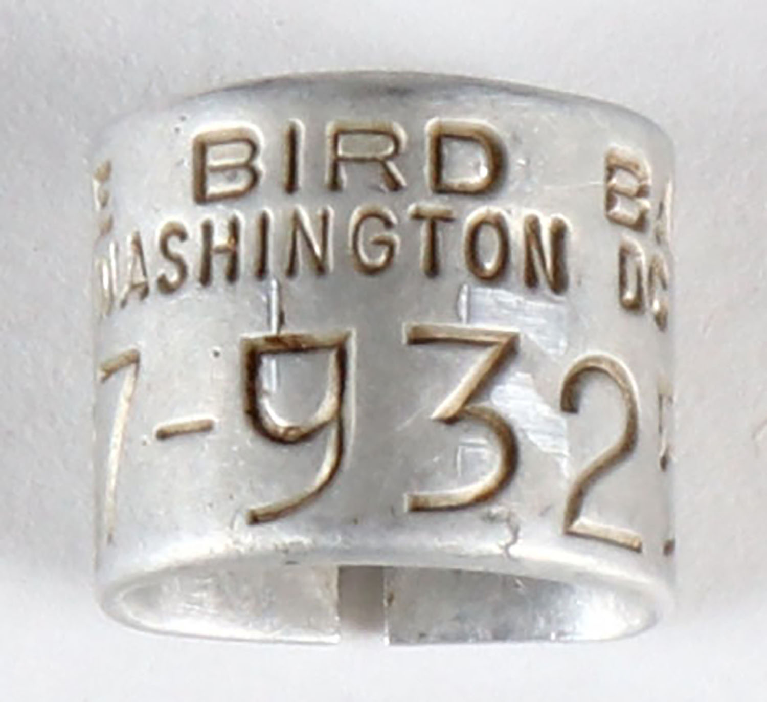 DUCK BAND 4 YEAR OLD BIRD, with certificate from 1986 we are offering a few duck bands that were all shot at one duck club in Peoria IL from 1964 - 1999, ''MALLARD FARMS R R 2'', this one has a certificate, this one was banded Approx. 7 miles E Cf Delta MAN 08/22/86 and shot 11/15/89. Grade: Excellent - Value: 40 to 100
