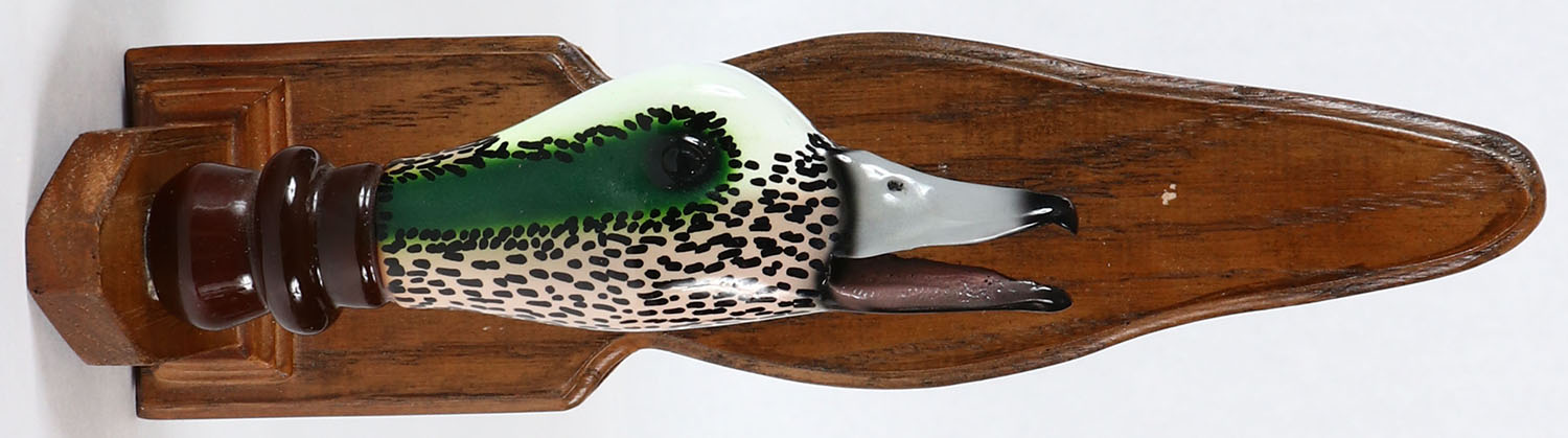 Rare L.J. Walton Speckle Belly Goose call in the shape of a Widgeon Drake, Detailed handcrafted, signed & dated 2011, wonderful colors & sounds great, easy to blow, Measures 5 1/2'' long, has wood stand. Grade: MINT - Value: 50 to 200