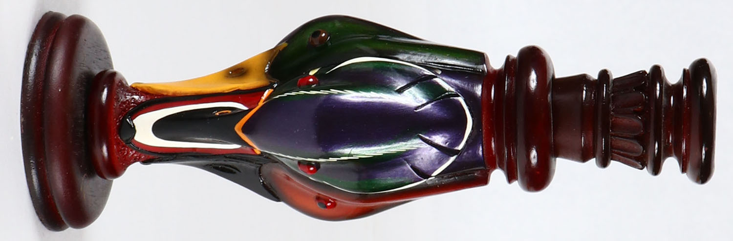 Marv Meyer, Ducks Unlimited, has the heads of mallard, Woodduck & Canvasback Drakes, Detailed handcrafted, signed, dated 2009, and sounds like a Redhead when you blow it. Measures 6 1/4'' long, has DU marked wood stand. Grade: MINT - Value: 40 to 100