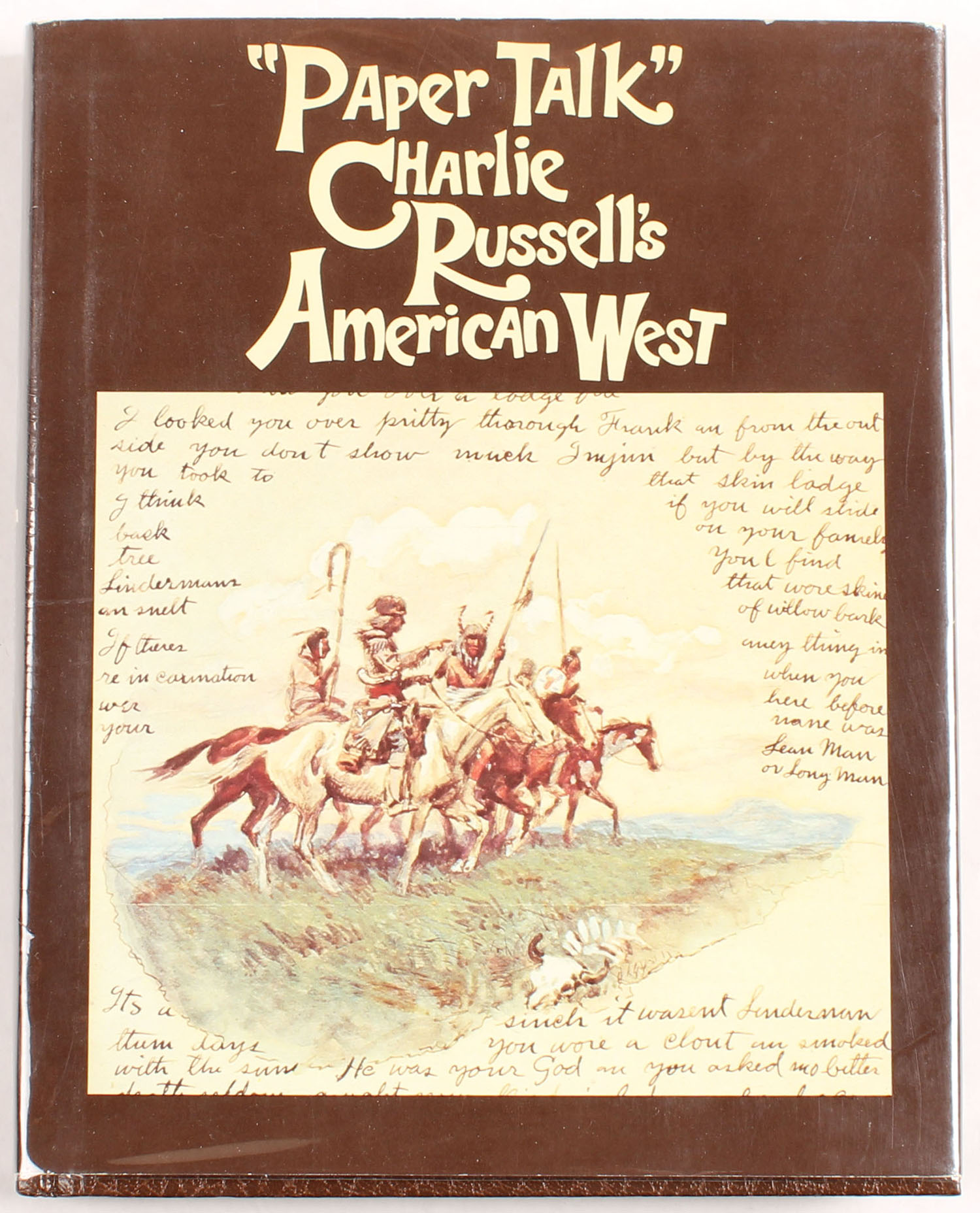 Paper Talk Charlie Russell's American West edited by Brian W Dippie 1979. 7 1/2'' x 9 1/2'', 224 pages, color photos, pages clean, binding tight, hardcover and paper jacket in very good condition. Grade: Very Good ++ - Value: 5 to 25