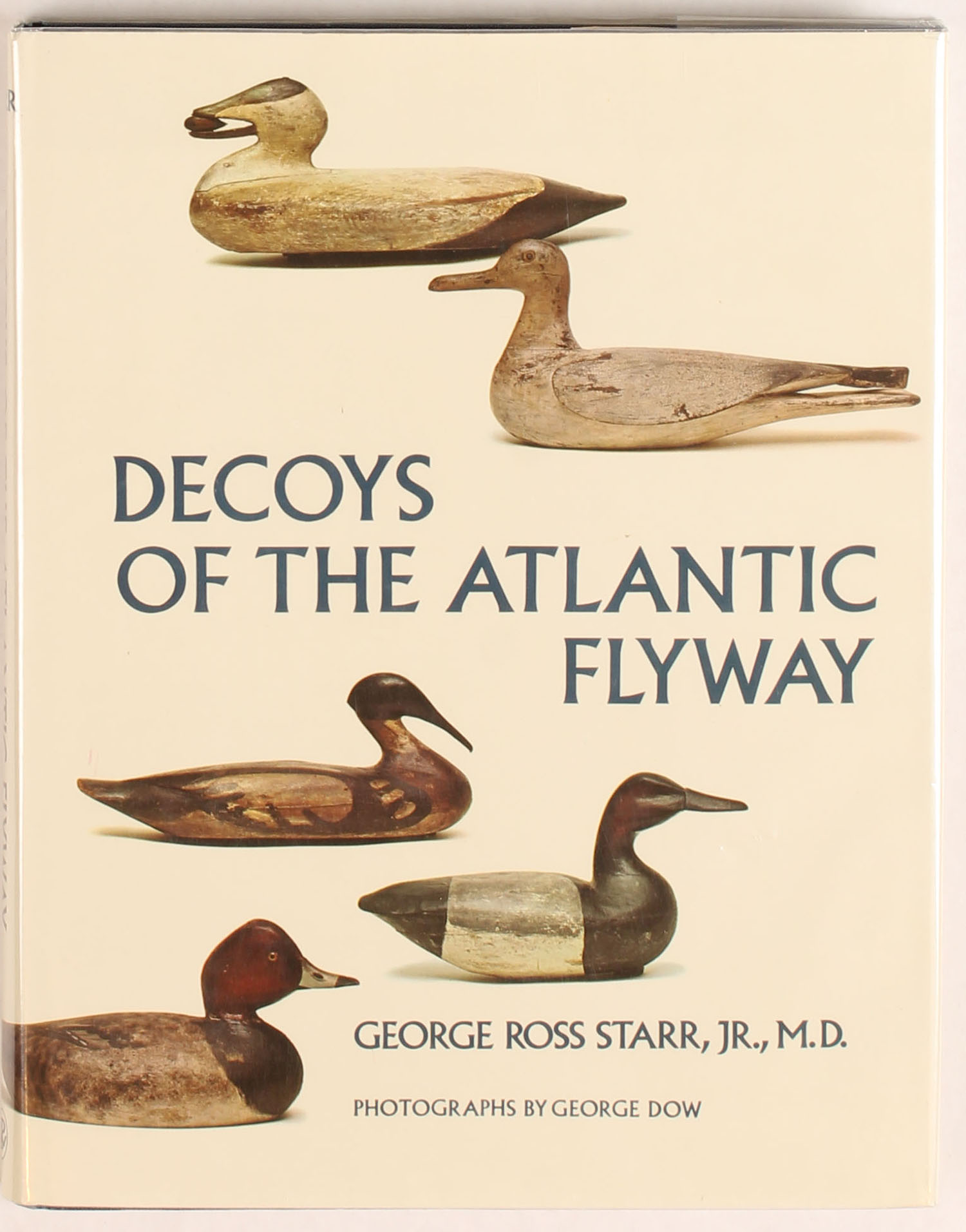 Decoys of the Atlantic Flyway by George Ross Starr, JR., M.D. 1974, 8 1/2'' x 11''. 308 pages, pages clean, binding tight, hardcover and dustjacket excellent, b/w images. Value: $100 Grade: Excellent + - Value: 20 to 100