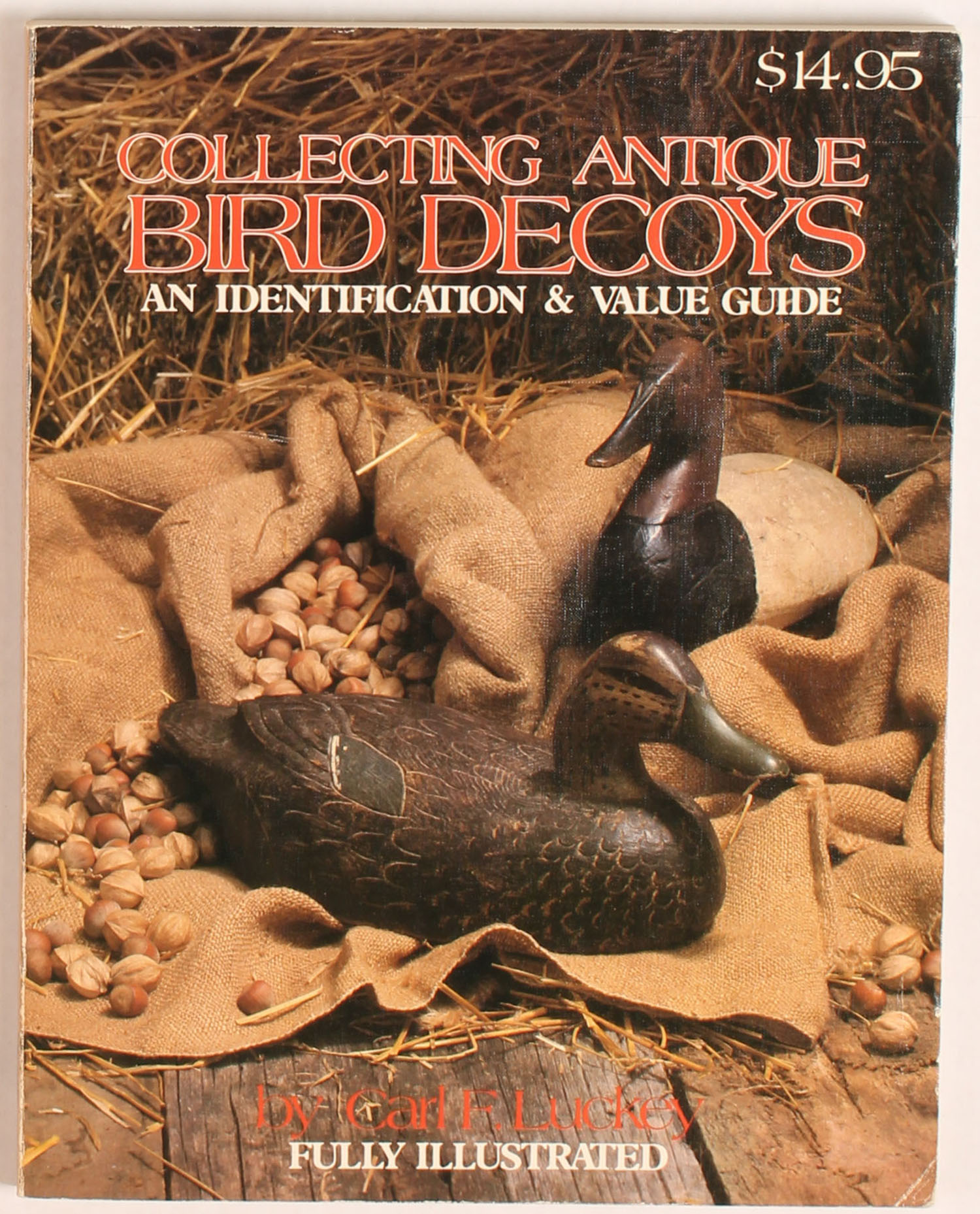 Collecting Antique Bird Decoys: An Identification & Value Guide by Carl F. Luckey 1983, 8 1/2'' x 11''. 179 pages, pages clean, binding tight, softcover very good, b/w and colored images. Value: $100 Grade: Very Good ++ - Value: 10 to 100