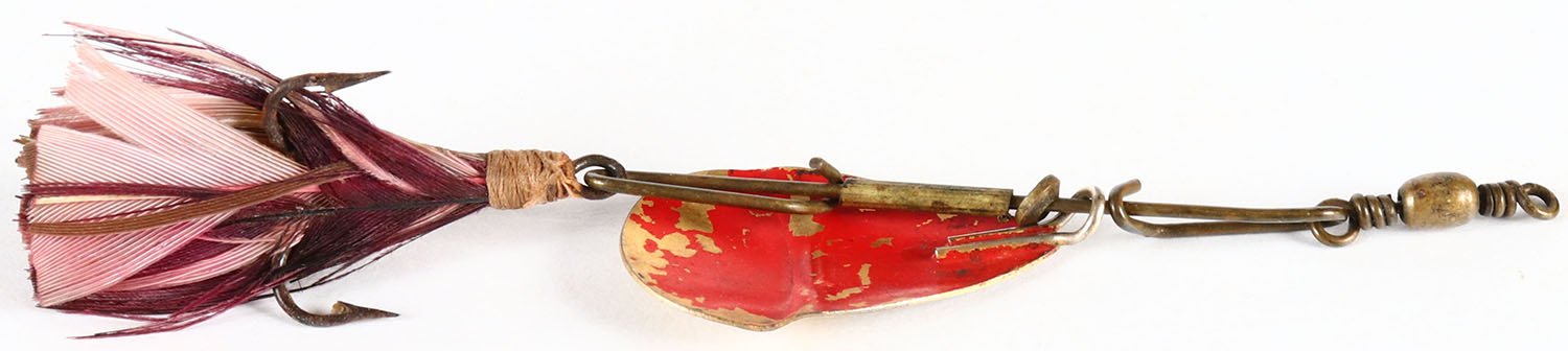Winchester Gold Bowl Trolling spoon No 9622, Nickel & gold plated blade with feather teaser, 1 hook. Grade: Very Good - Value: 20 to 100