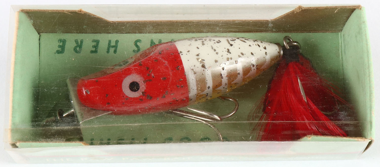 | PAW PAW Bait Co. in the original box, No. 4104, red & white. G...