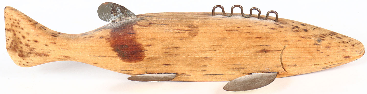 Ice Fishing Decoy, possibly John Zobava, has metal fins, 6 1/2''. Grade: Excellent - Value: 10 to 30