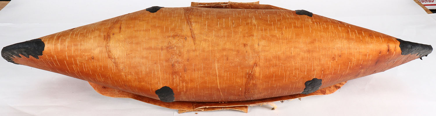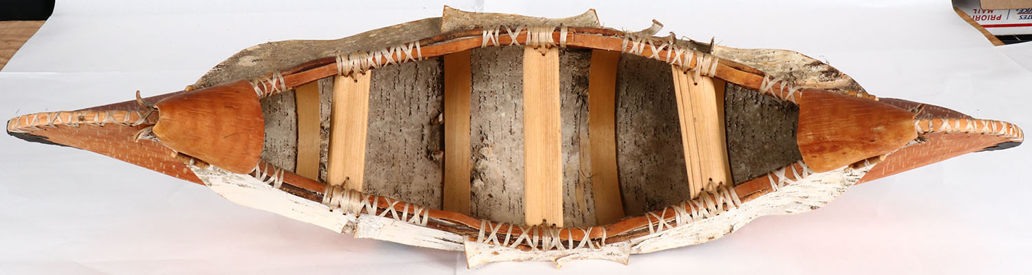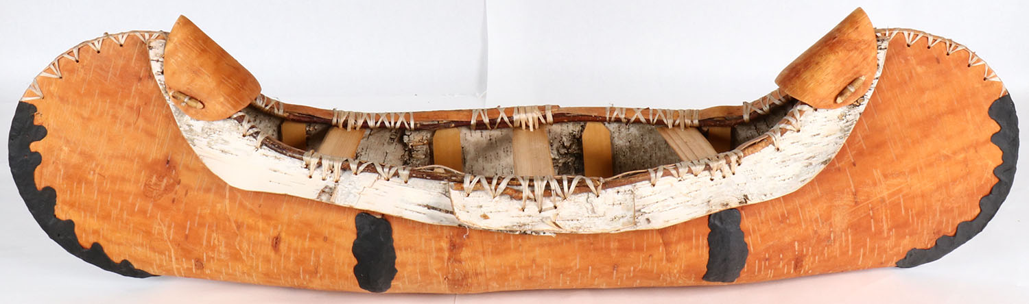 Hand made birch canoe by Paul Wakanabo of Squaw Lake, MN. Wonderful construction, I believe Paul W. is an American Indian, 44'' long & 14'' wide. Rare to find an Indian made birch canoe. Grade: MINT - Value: 40 to 150