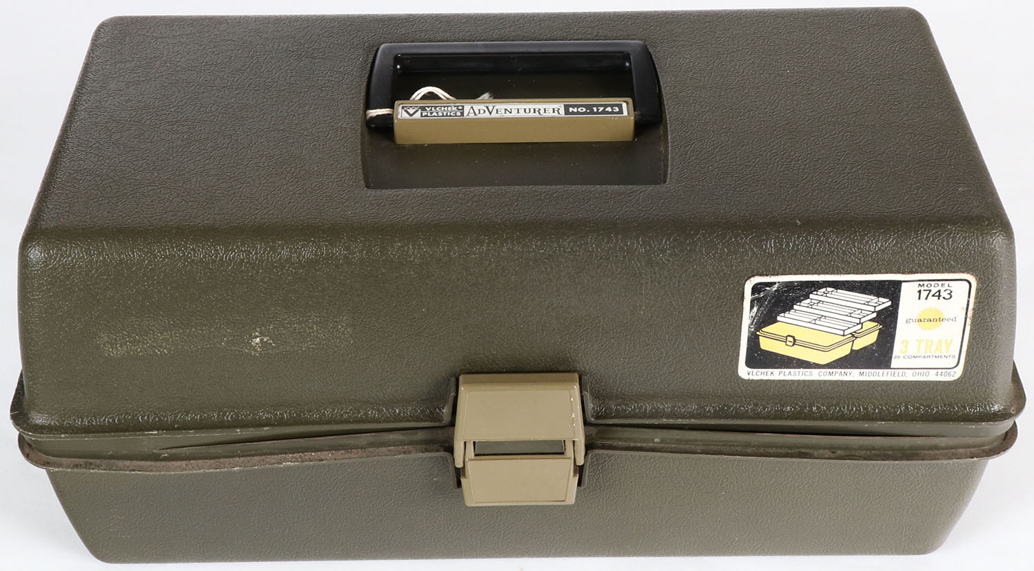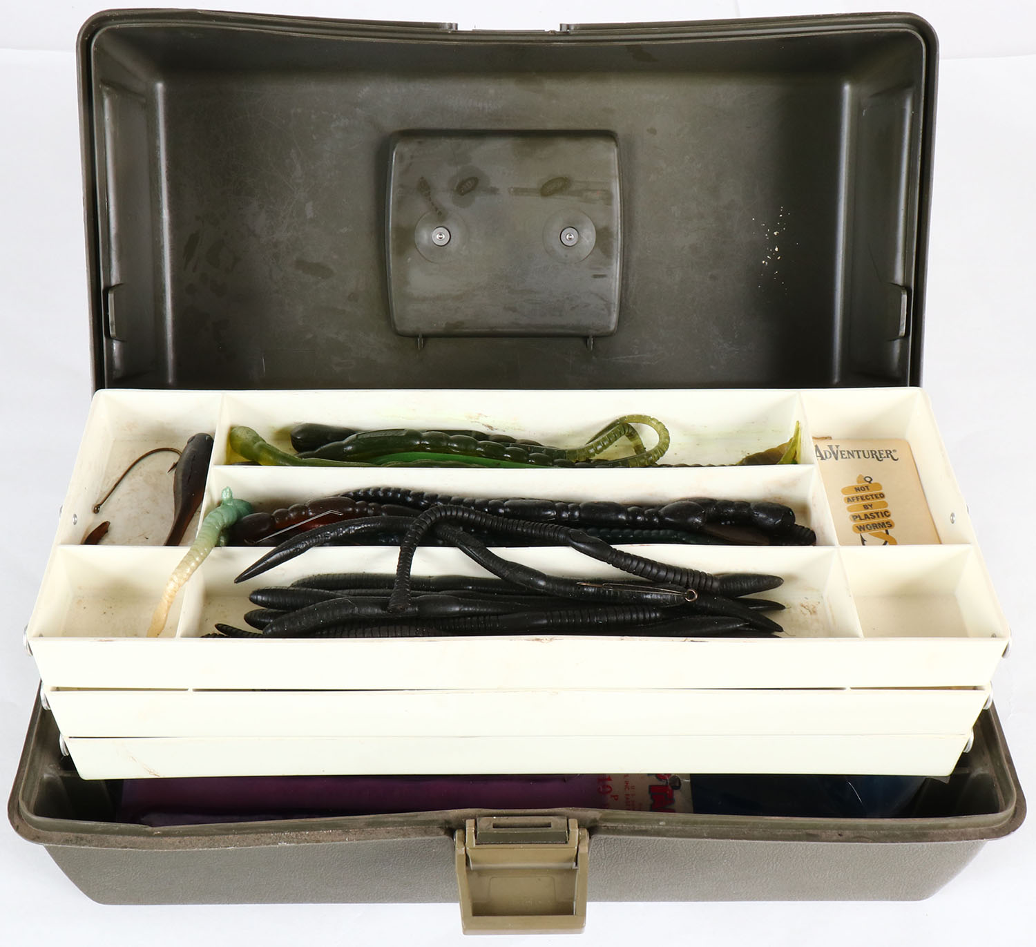 Vlchek AdVentures No 1743 tackle box full of plastic worms. Grade: Very Good - Value: 2 to 50