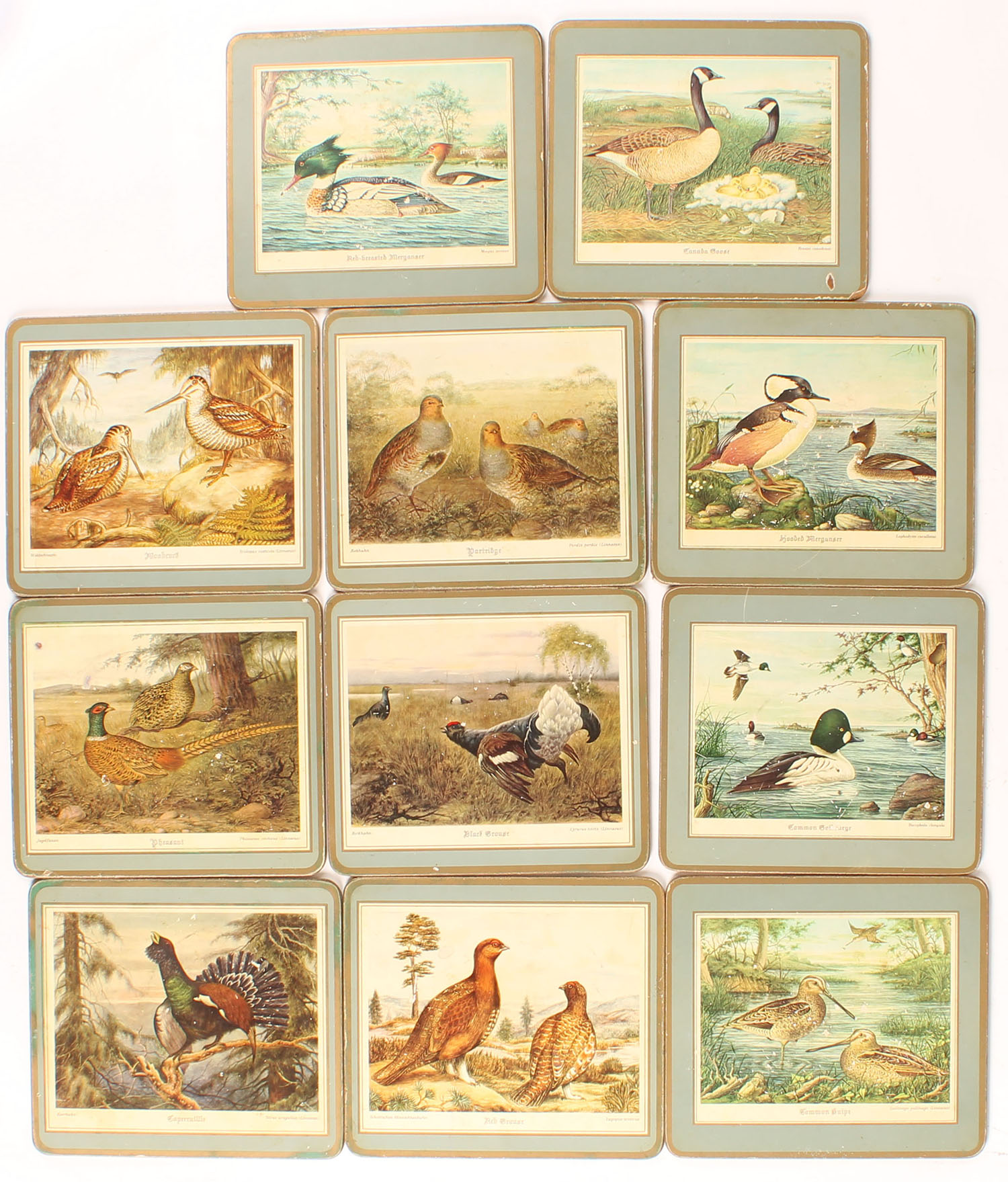 Lot of 11 full color game bird names on heavy cardboard, 8 1/4'' x 7 1/2''. Grade: Very Good ++ - Value: 20 to 200