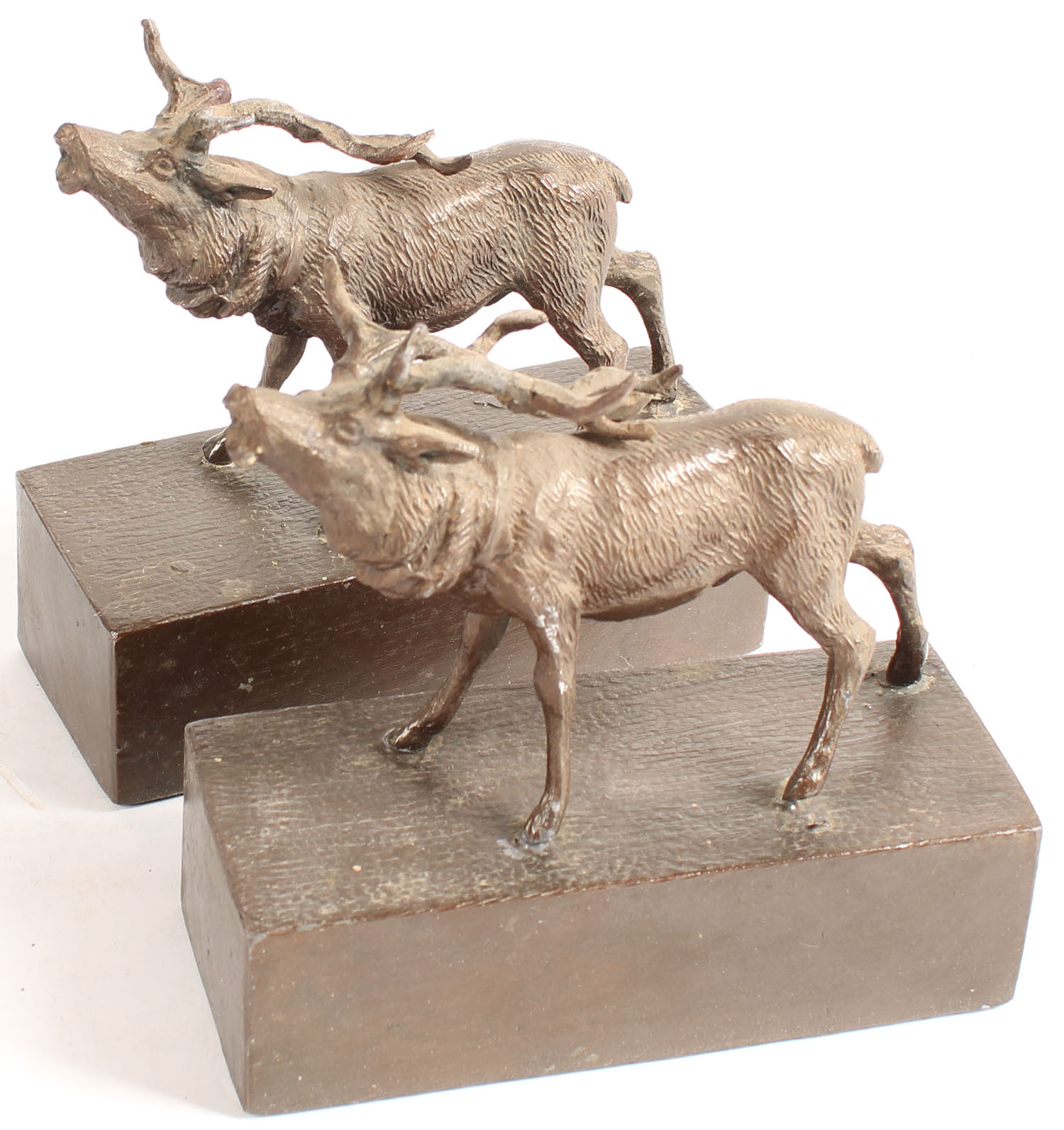 Lot of 2 Bronze Bull Elk Bugling, each one is 6'' x 6'' tall, one has a broken antler & one has broken off the base. Grade; Very Good - Value: 10 to 50
