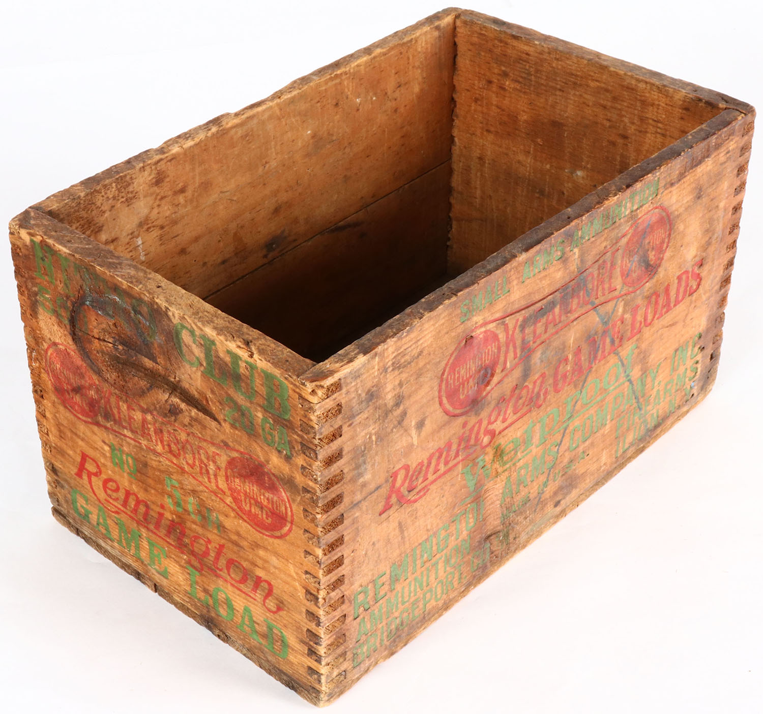 Remington UMC, 20 Ga., Game LOAD, red, green & black print is nice and crate has have age soiling. Grade: Very Good ++ - Value: 30 to 90