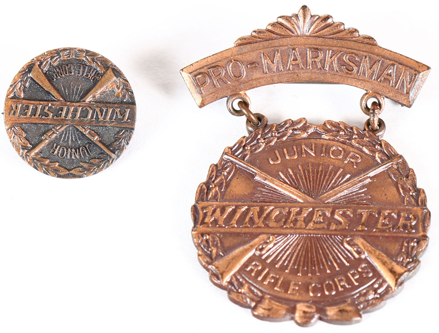 Lot of 2 Winchester Junior rifle corp pinbacks. Grade: Excellent - Value: 16 to 50