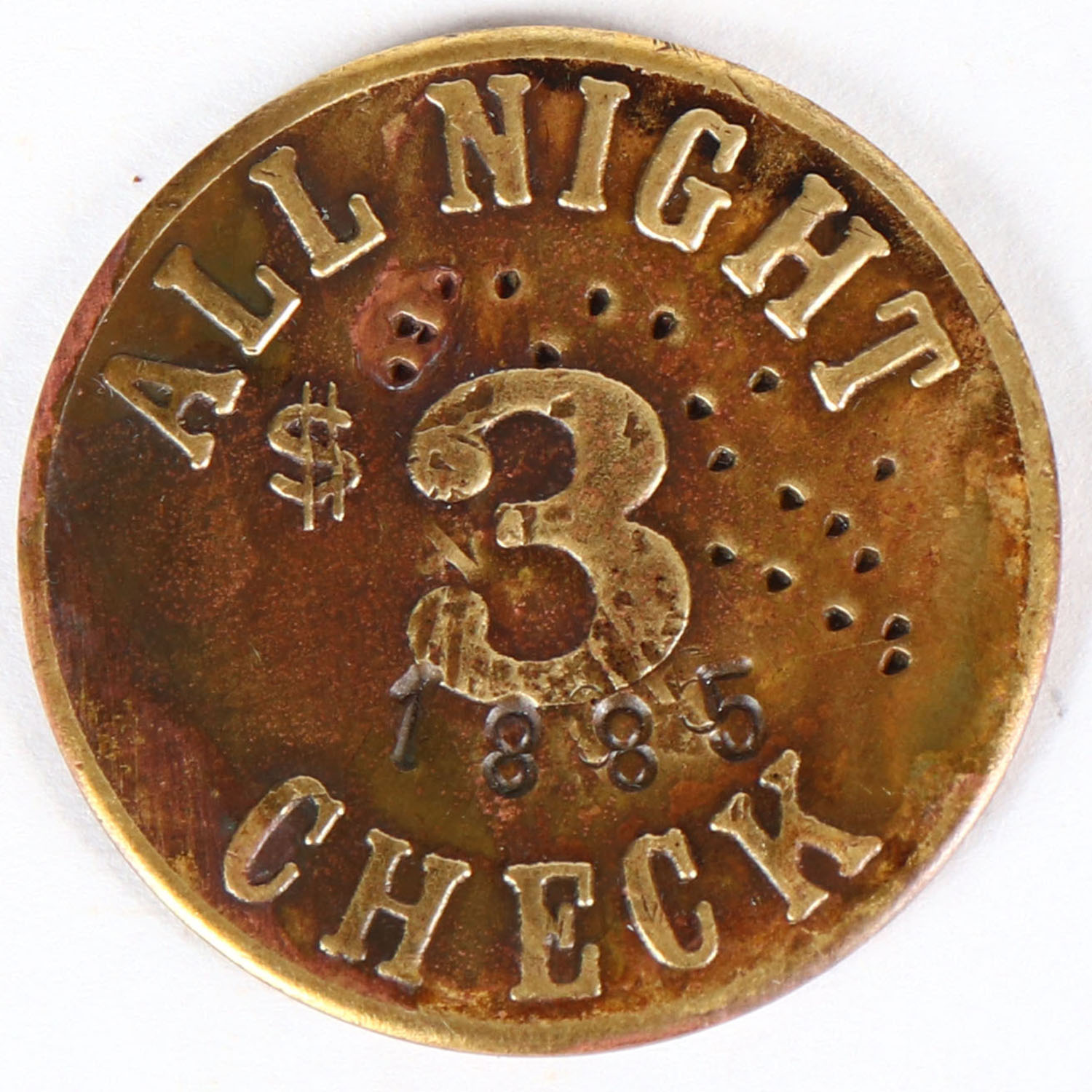 Brothel Token Arizona territory dated 1885. Grade: Very Good - Value: 20 to 40