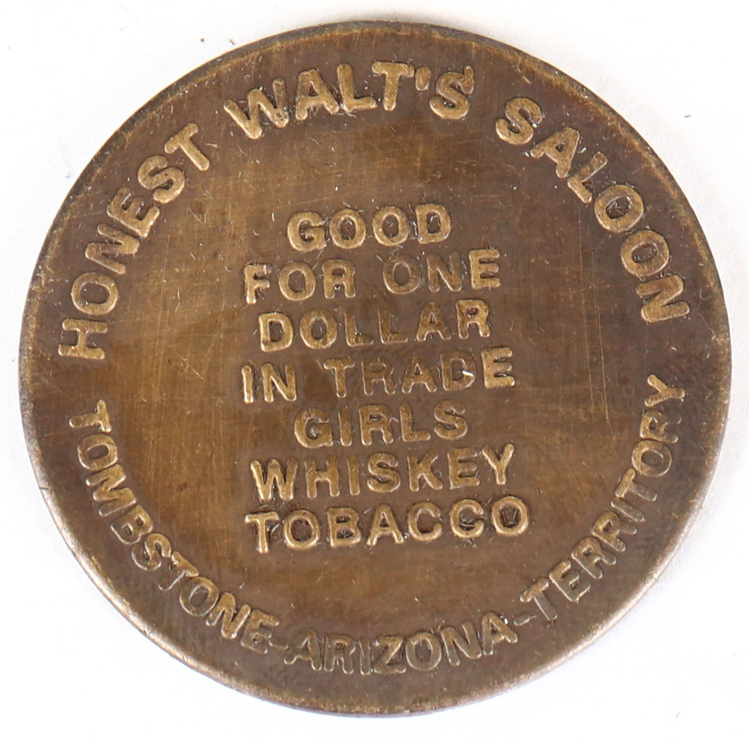 Double sided Brothel Token. ''Honest Walts Saloon''. Grade: Excellent - Value: 10 to 40