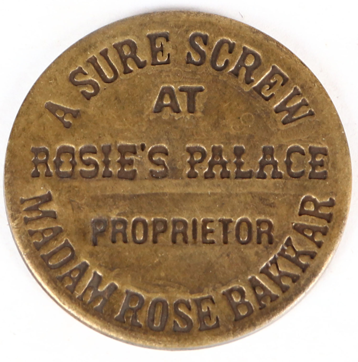 Double sided Brothel Token. ''Rosies Palace''. Grade: Excellent - Value: 10 to 40