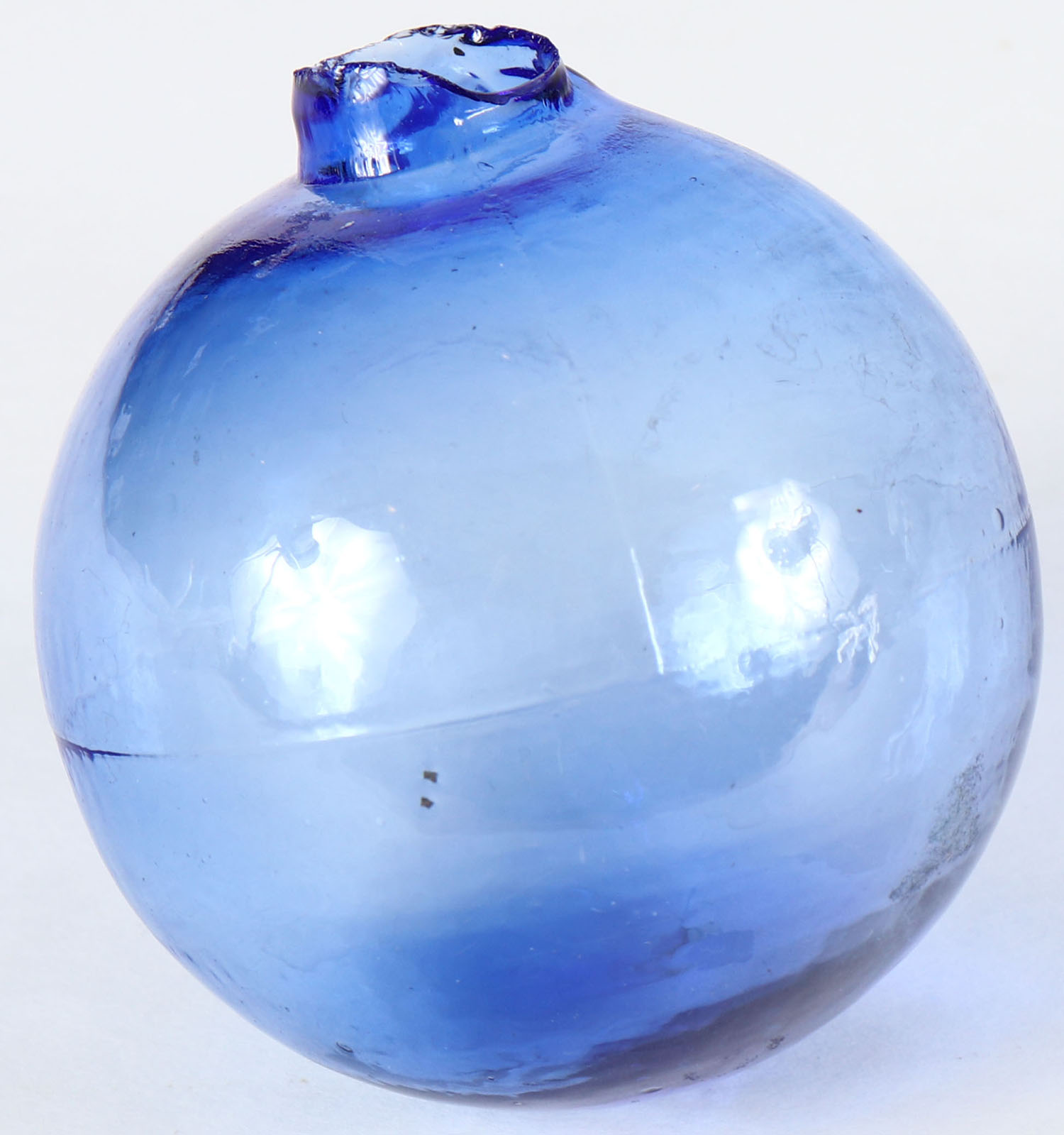 RARE! Blue Glass Target Ball, smooth design, 3 piece, medium neck, wonderful condition. Grade: Excellent - Value: 100 to 500