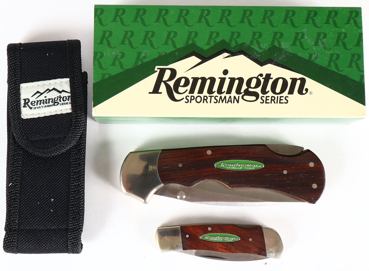 Remington sportsman series folding blade, 4'' blade, has sheath. Grade: Excellent - Value: 16 to 60