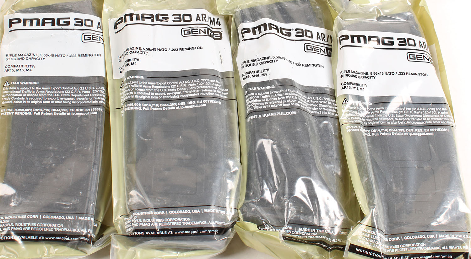 Lot of four, Magpul AR-15 Gen 2 Pmags, Black plastic, 30Rd. Mags, 5.56/.223, all sealed in the original packaging. Grade: Excellent ++ - Value: 30 to 60