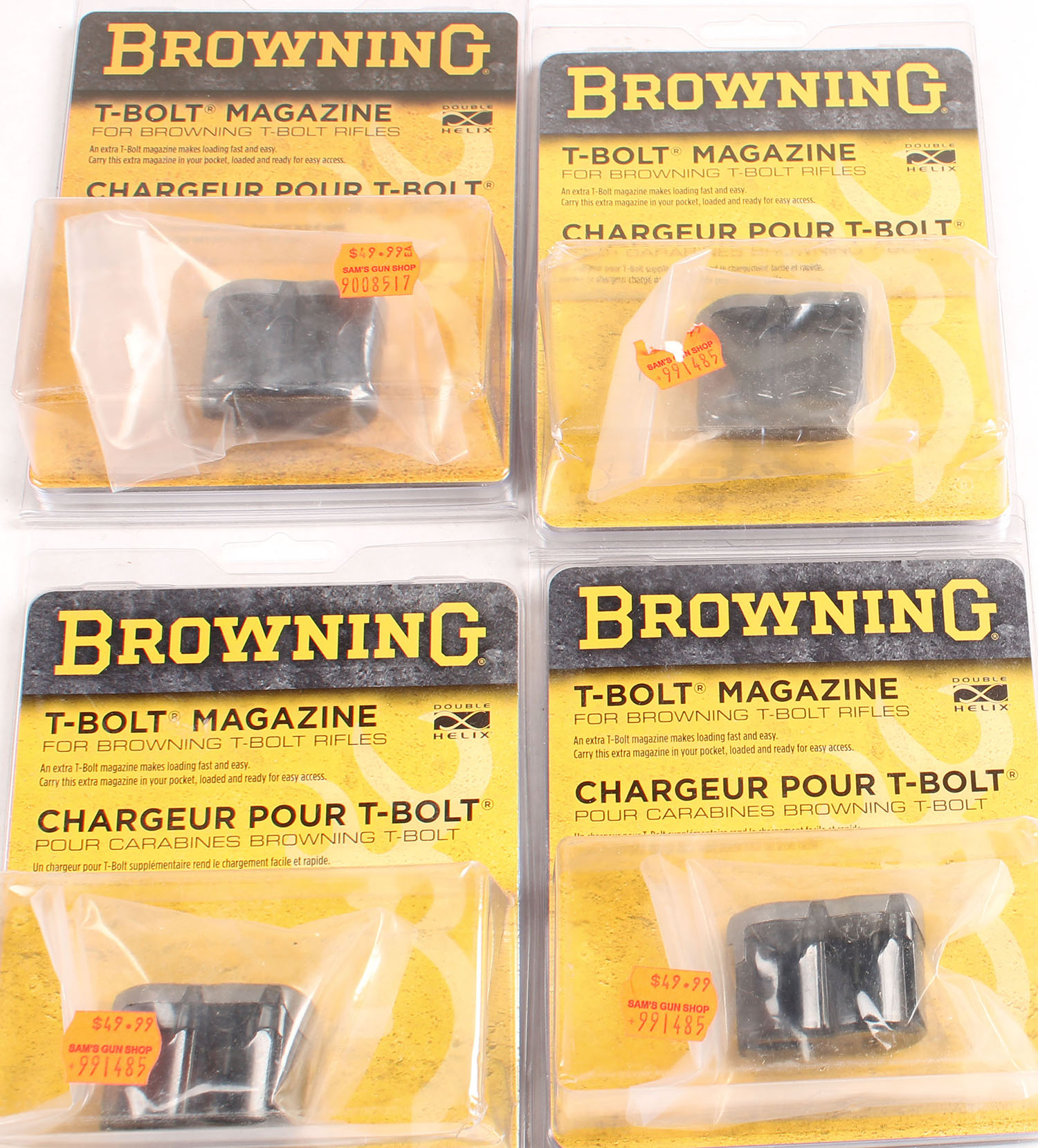 Lot of four, Browning T-bolt 10 Rd .22LR mags, all in original packaging. Grade: Excellent - Value: 100 to 200