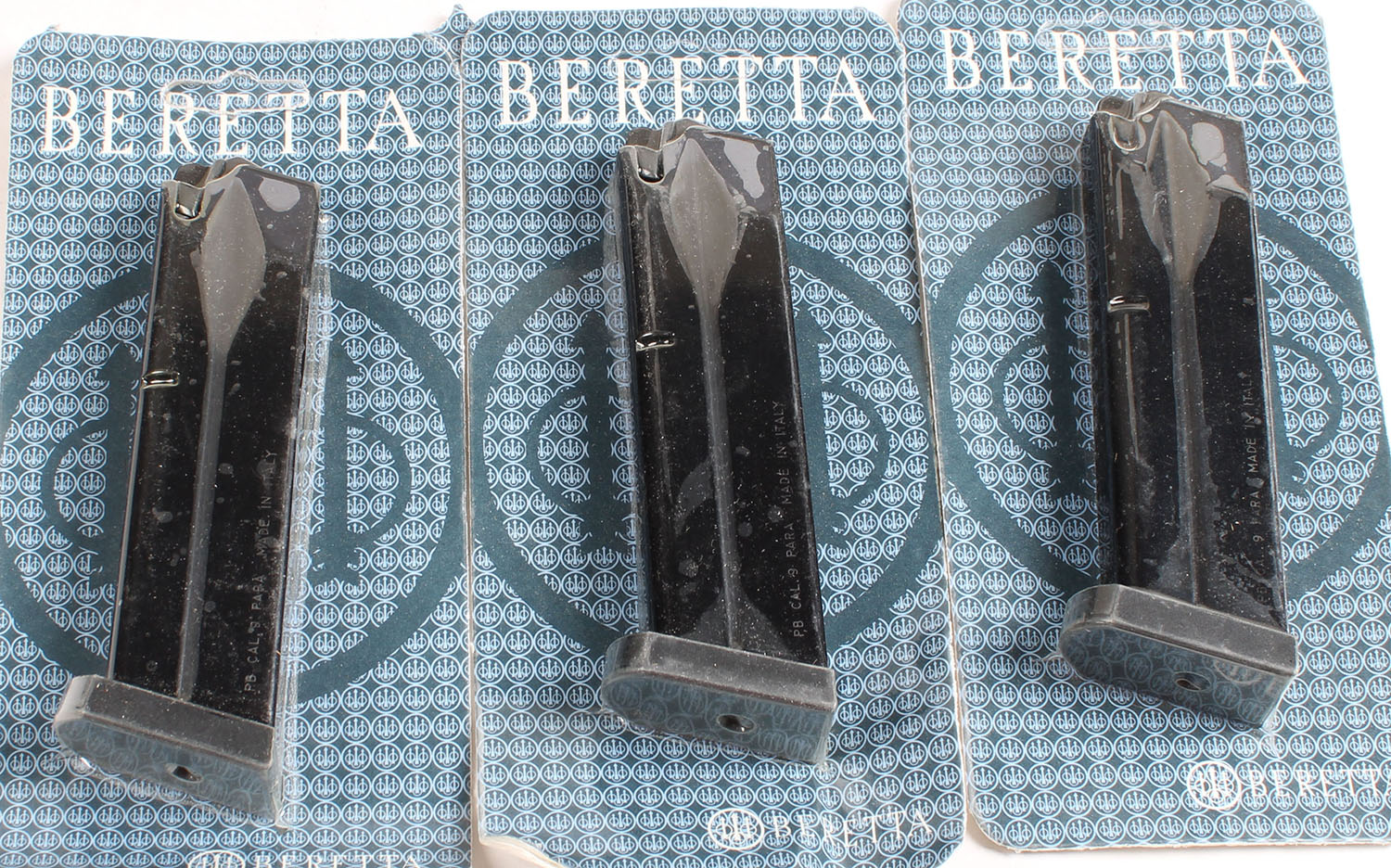 Lot of three, Beretta 92FS 17 Rd. mags, 9mm, all in original packaging. Grade: Excellent - Value: 40 to 80