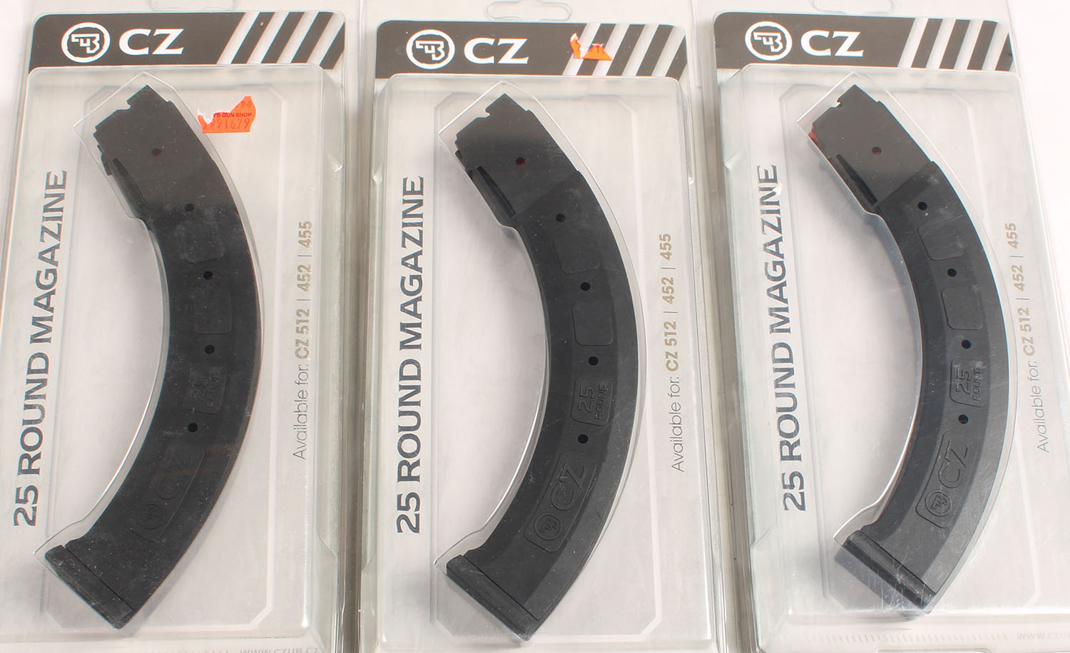 Lot of three, CZ, .22LR 25Rd. Mags for CZ models 512,452,455, all in original packaging. Grade: Excellent ++ - Value: 40 to 120
