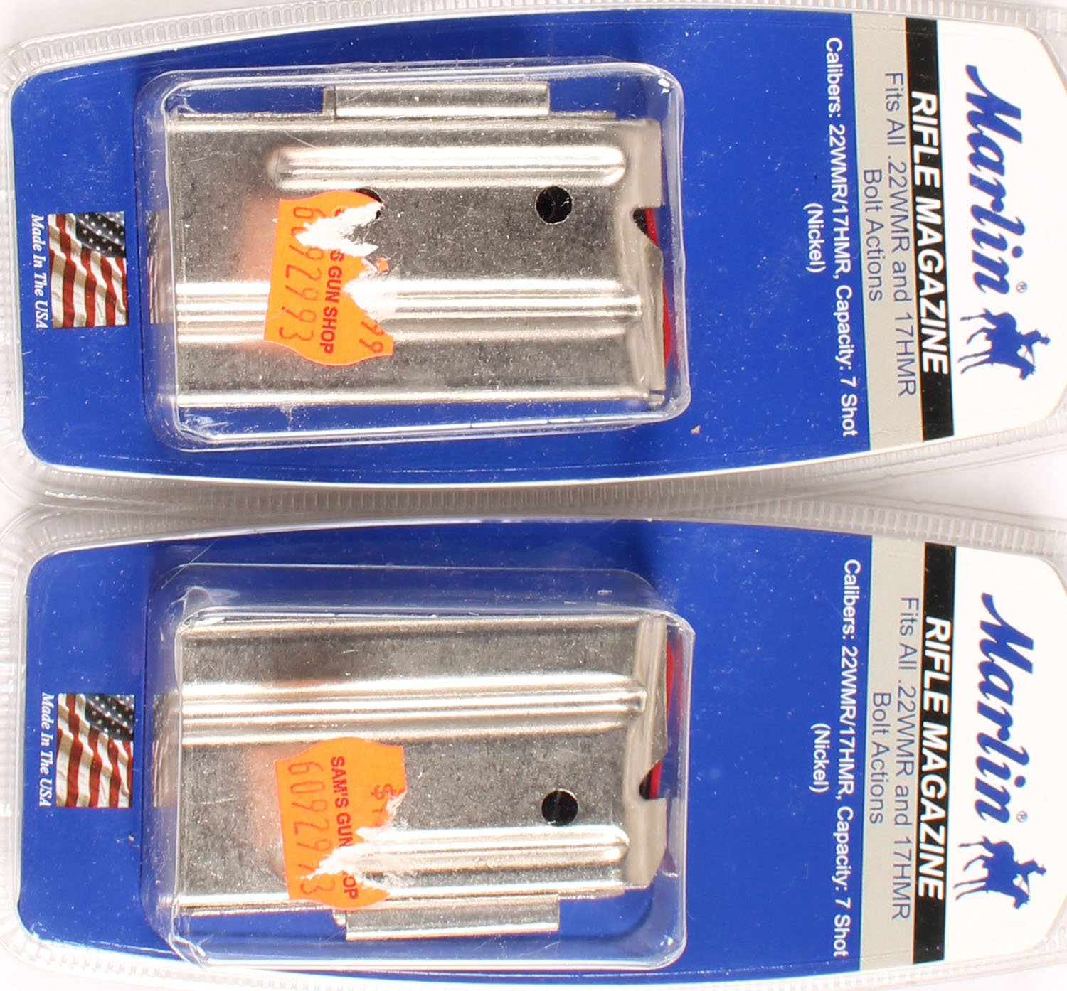 Lot of two, Marlin .22WMR/.17HMR 7Rd. Mags, in original packaging. Grade: Excellent - Value: 20 to 40