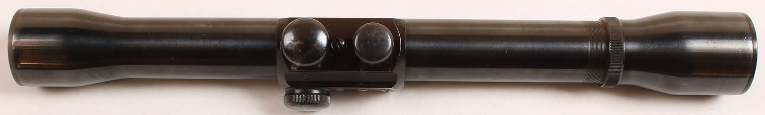Weaver, KV, 2 3/4-5x, capped turrets, fixed parallax, adjustable focus, 1 inch tube, lens is slightly hazy. Weavers first Variable power scope, made back in the 1950's. Grade: Very Good ++ - Value: 10 to 60