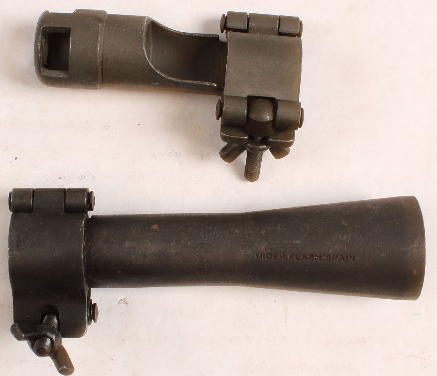 Lot of 2 made in Spain muzzle attachments. Grade: Excellent - Value: 4 to 40