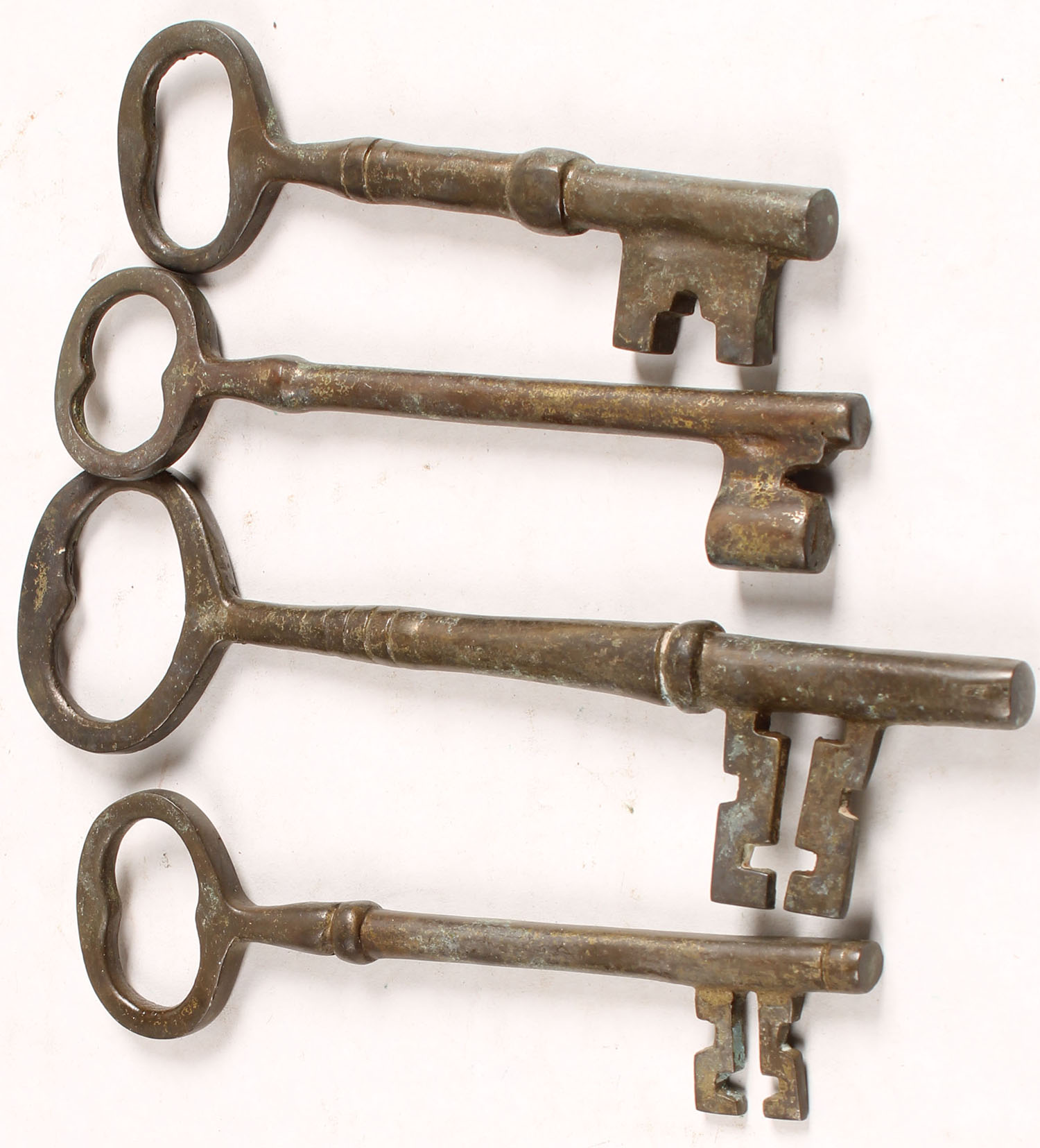 Lot of 4 antique large metal keys. Grade: Excellent - Value: 10 to 100