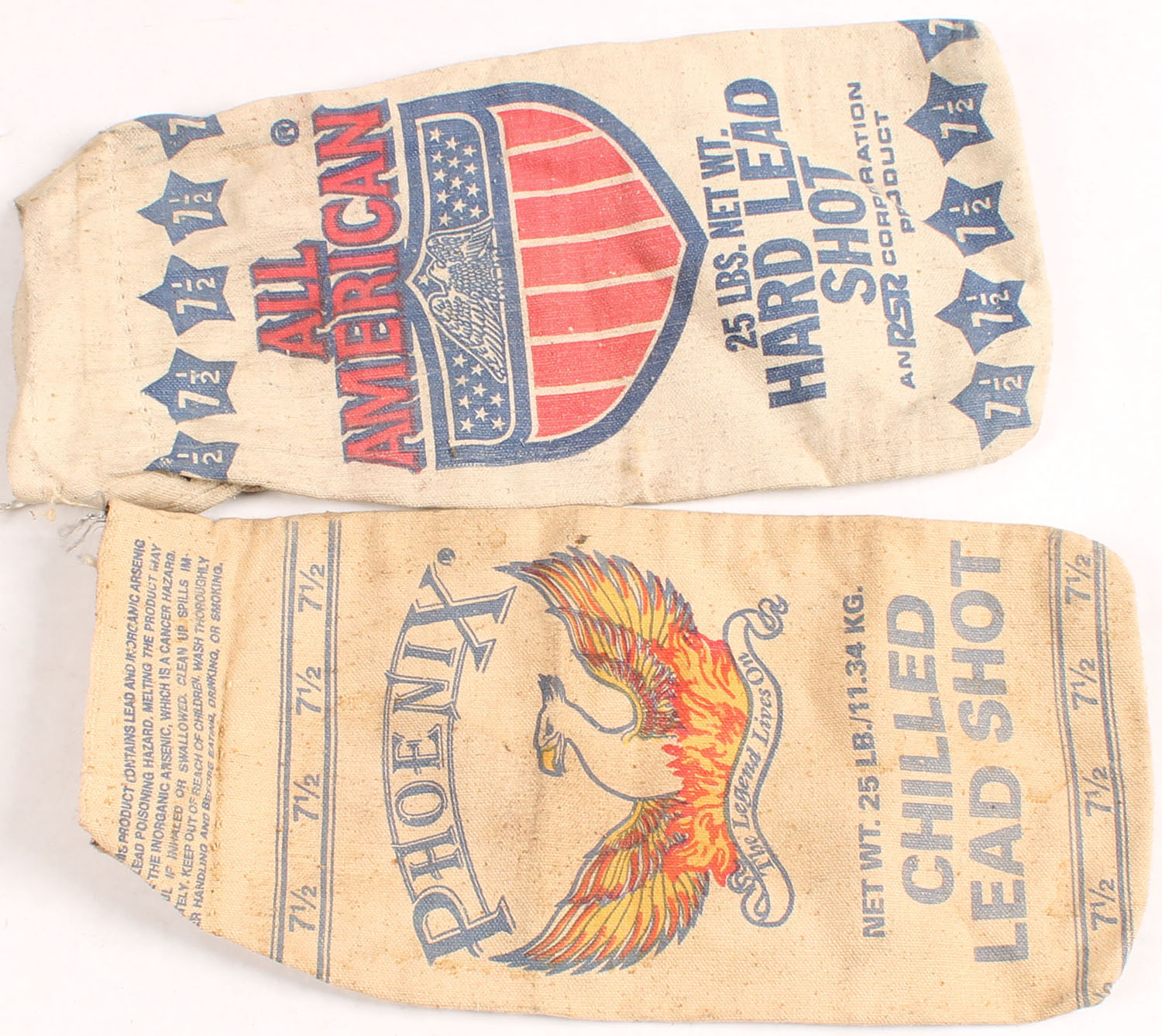 Lot of 2 empty shot bags, some age soiling. Grade: Excellent - Value: 2 to 20