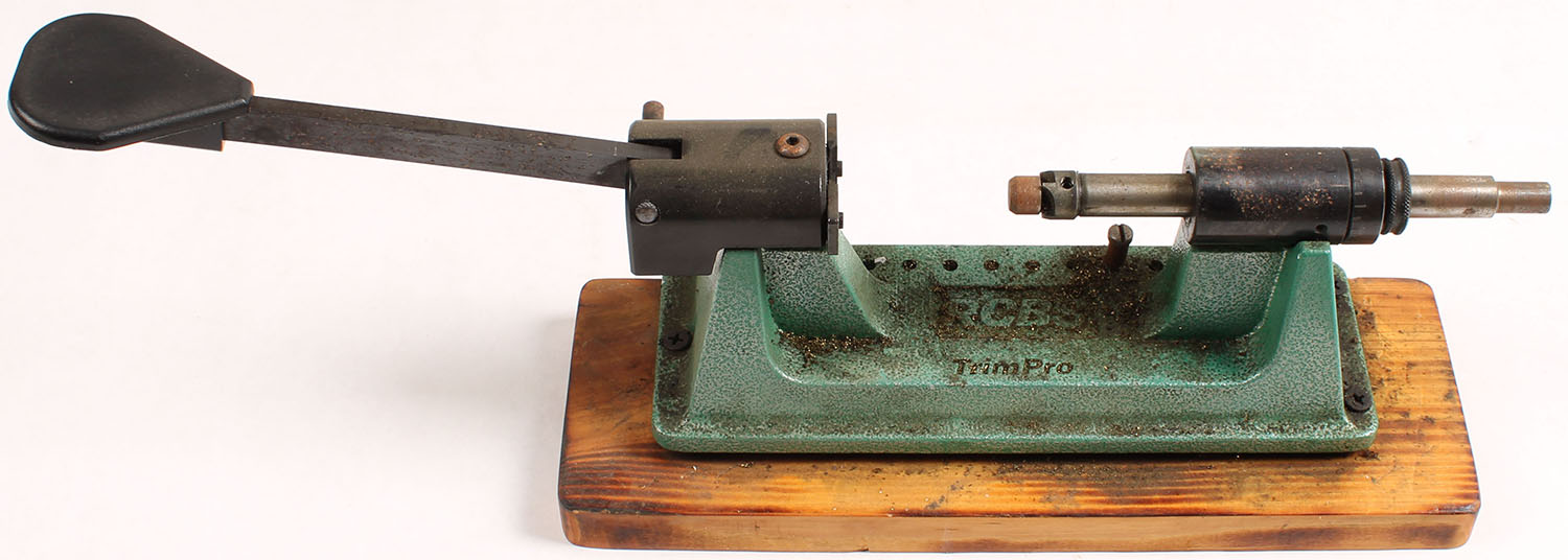 RCBS TrimPro mounted on wood, has age soiling and case shavings. Grade: Very Good - Value: 4 to 40