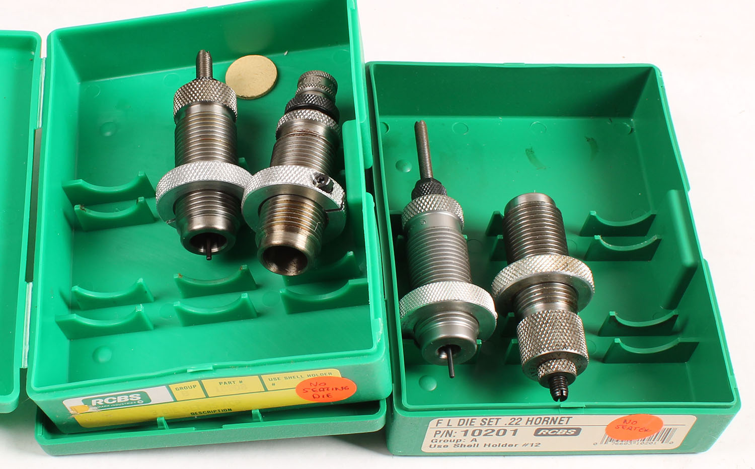 Lot of 2 RCBS reloading dies, .22 Hornet and .45 acp cal., no seater. Grade: Excellent - Value: 10 to 50