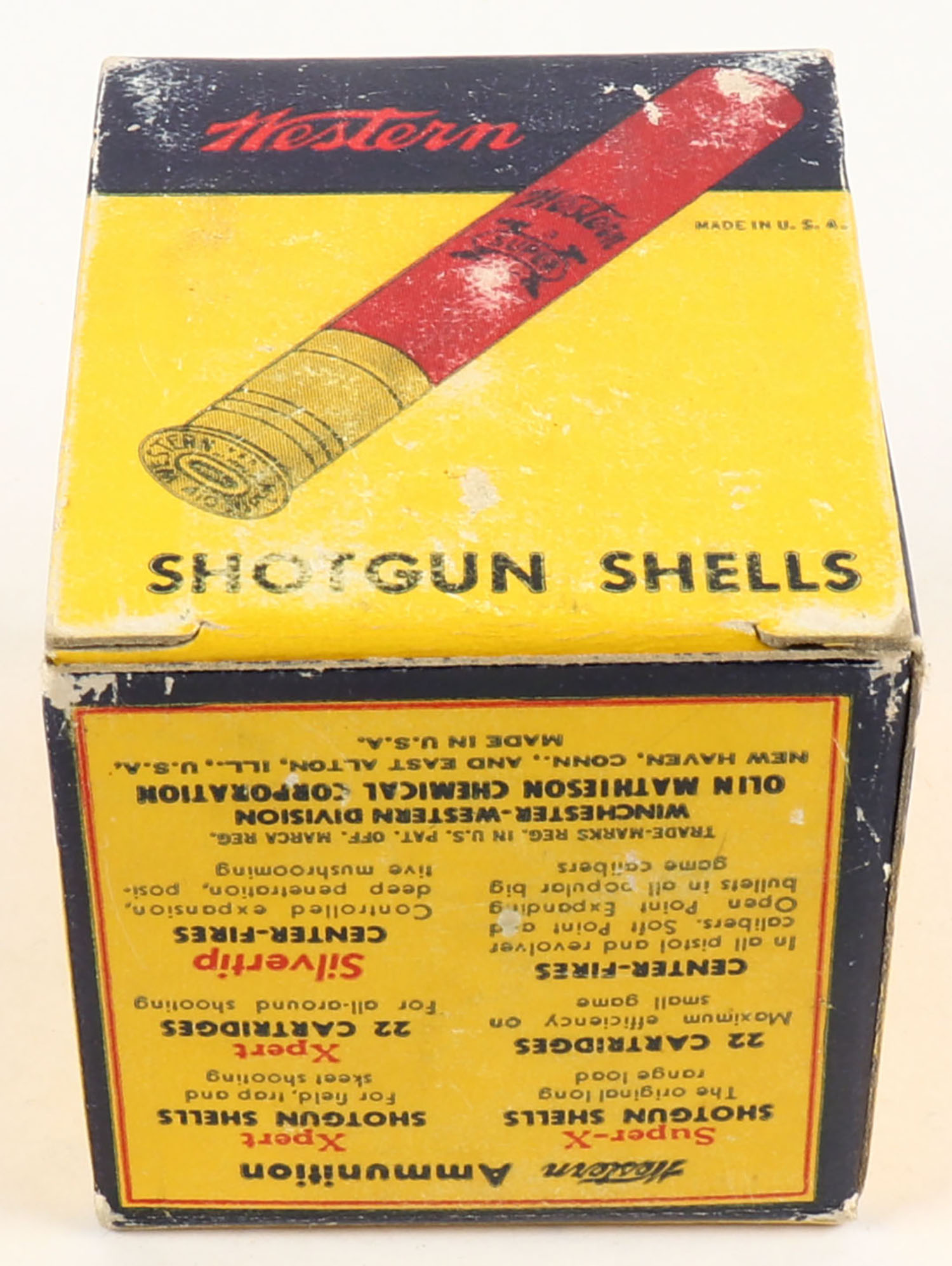 Western, Super X, 410ga., 3'', 1pc., Full, shot size 7 1/2'', multi-colored box, box is very solid, paper shells are excellent. Grade: Excellent ++ - Value: 10 to 30