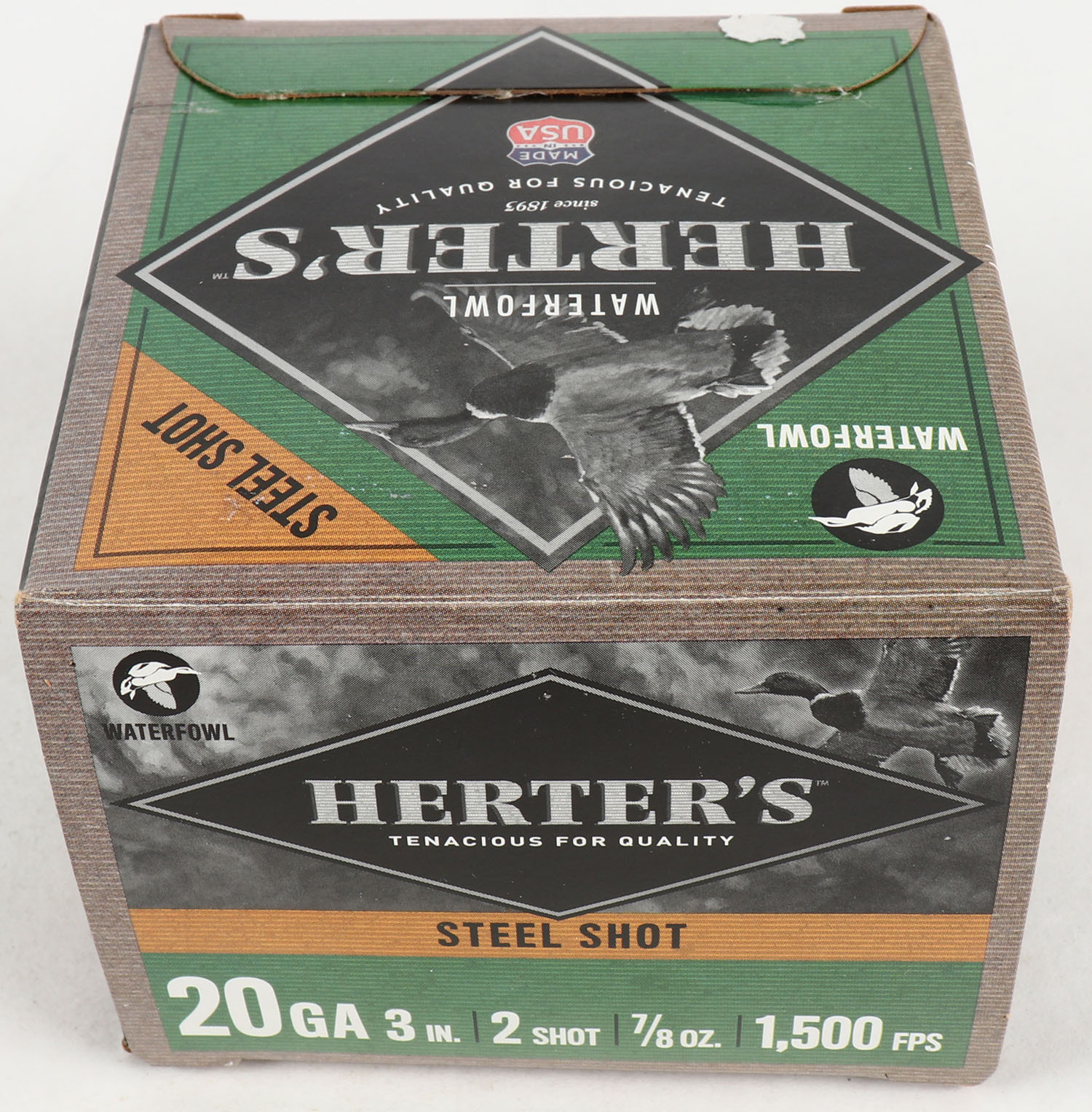 Herter's, Steel Shot, 20ga., 1pc., 3'', shot size 2, Full, multi-colored box, box is very solid with excellent colors, plastic shells are very good. Grade: Excellent - Value: 10 to 40