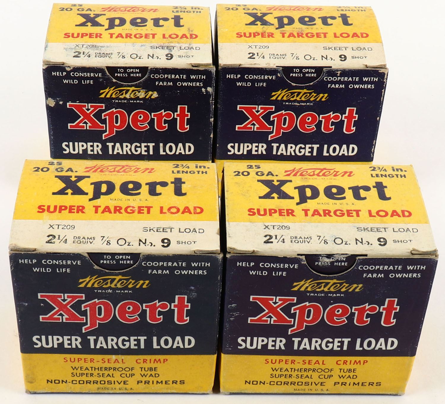 Lot of 4 Western, 20ga., Appears Full, Shotshell Boxes. Grade: Very Good - Value: 10 to 40