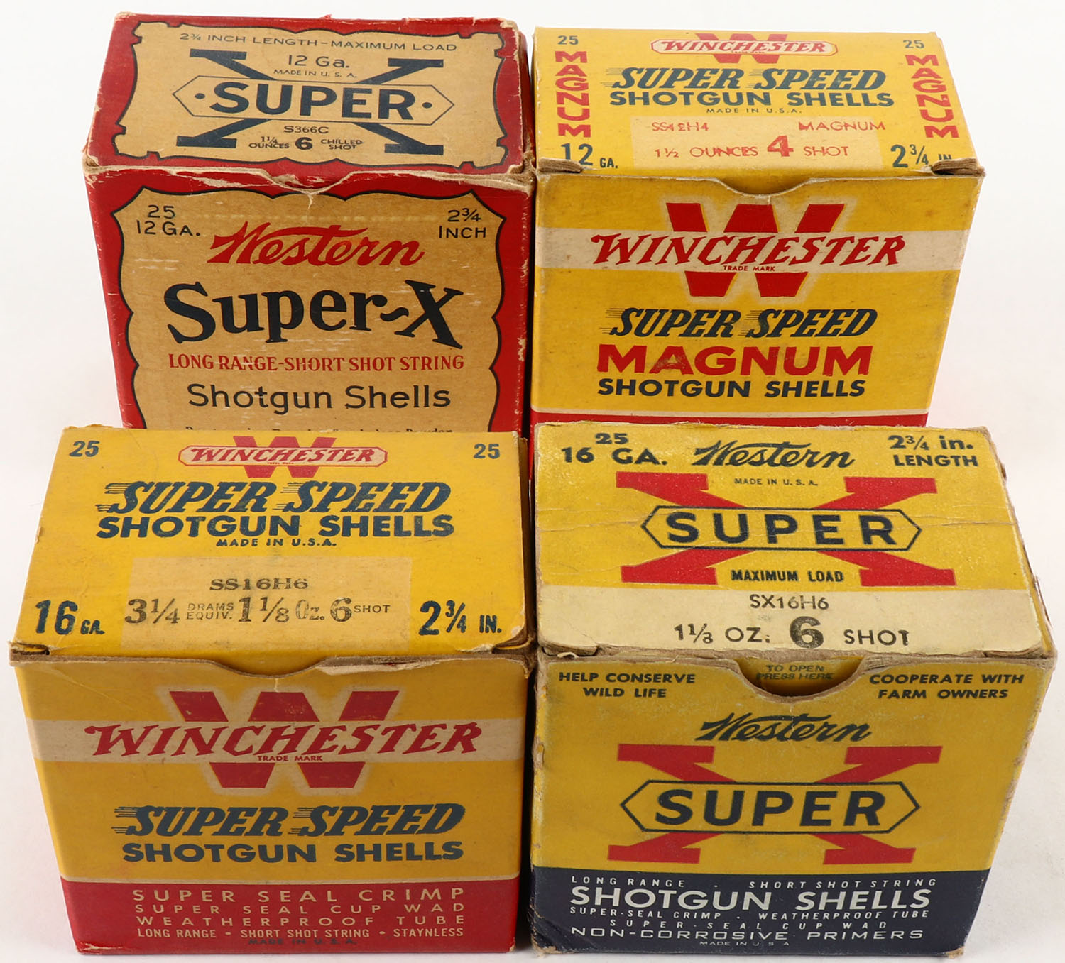 Lot of 4 , Winchester & Wester, 12 & 16ga., Appears Partial, Shotshell Boxes. Grade: Very Good - Value: 10 to 40