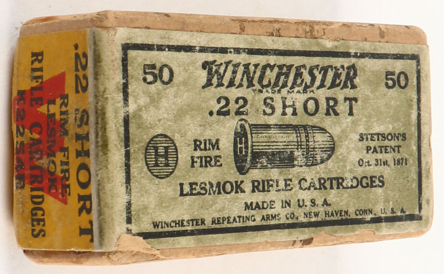 | Winchester, Lesmok Rifle Cartridges, .22 Short 1923 issue, RR: W...