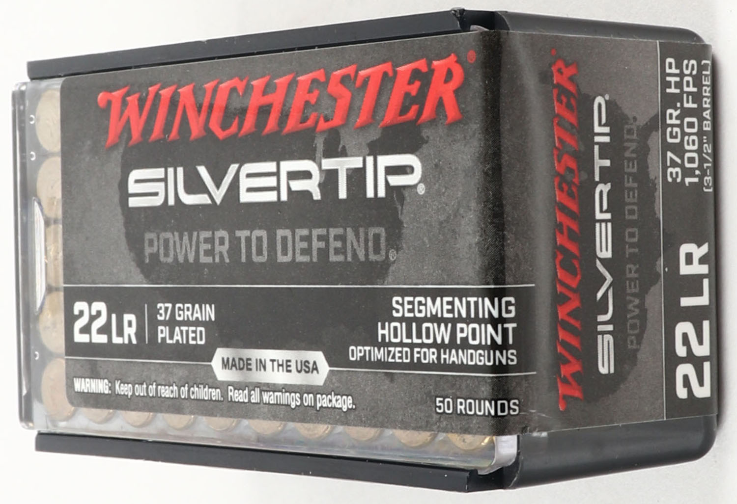 Winchester, Silvertip, .22 Long Rifle, 37 Grain Plated Segmenting Hollow Point, FULL & SEALED, 2pc. Smoke plastic tray with black & gray sealing label, box is MINT, label is intact with minty color. Grade: MINT - Value: 10 to 50