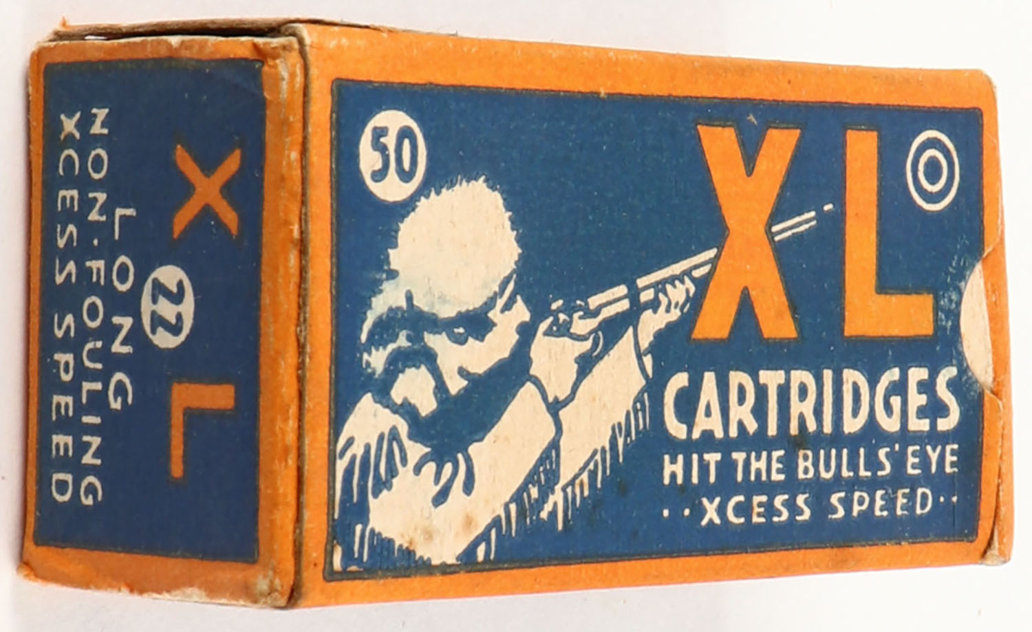 Federal, XL Cartridges, .22 Long, Xcess Speed, RHWeb: FCC-4.1 L-1b, Full, 1pc. Blue orange & white box, box is solid with excellent color, minor age soiling & corner wear, edges are crisp, end flaps are solid, ammo is excellent to minty. Grade: Excellent + - Value: 300 to 600