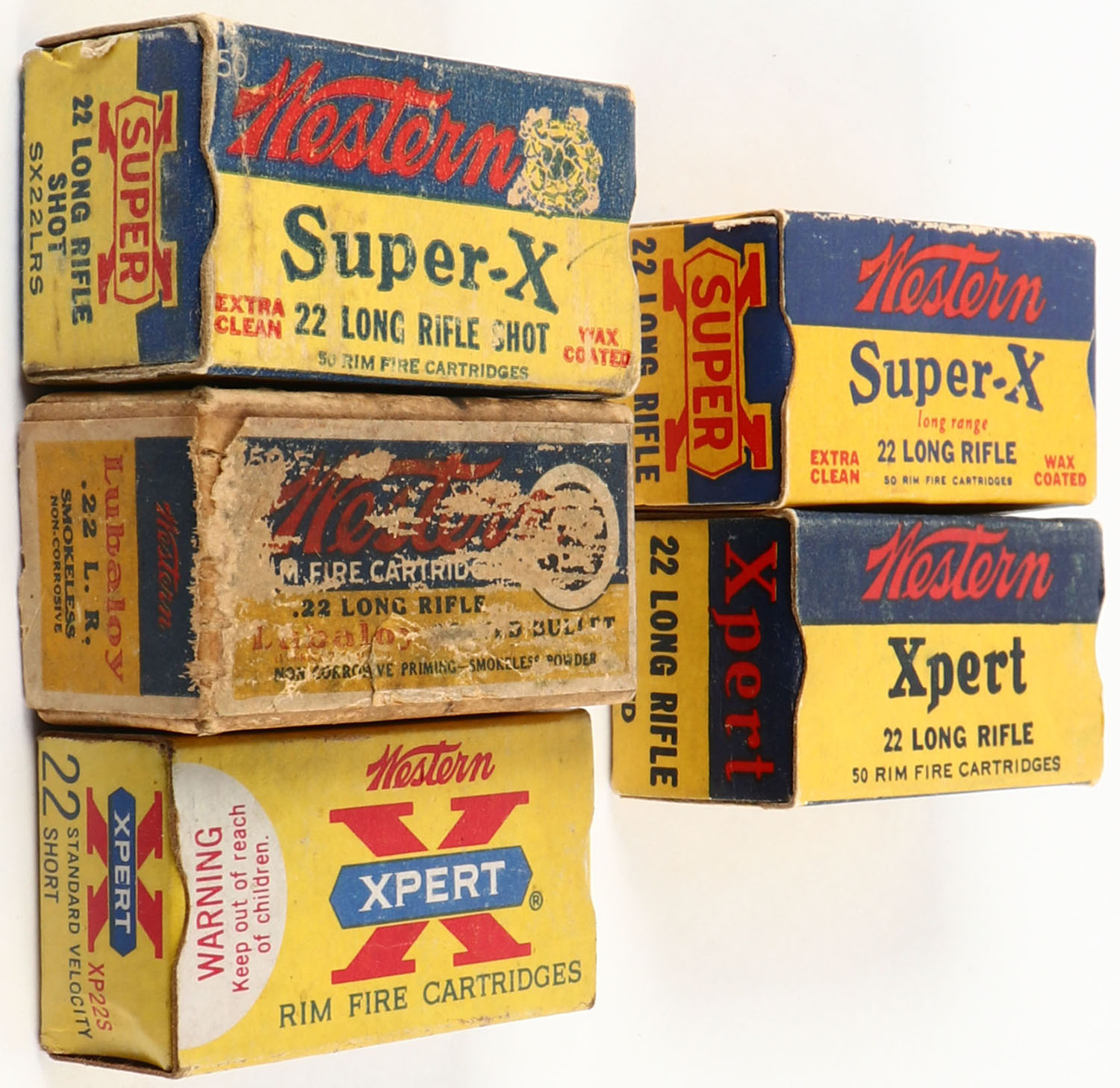 | Western, lot of (5) boxes, all boxes empty. Grade: Very Good - ...