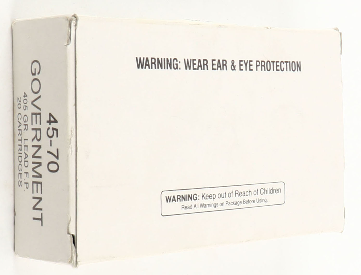 Unknown, Mfg., .45-70 Government, 300 Grain Hollow Point, Full, 1pc, white box with black print, box is solid, ammo is excellent. Grade: Very Good ++ - Value: 20 to 60