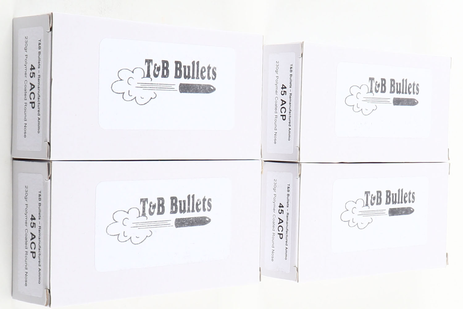 | T&B Bullets, Lot of (4), .45 ACP ammo boxes, Remanufactured Amm...