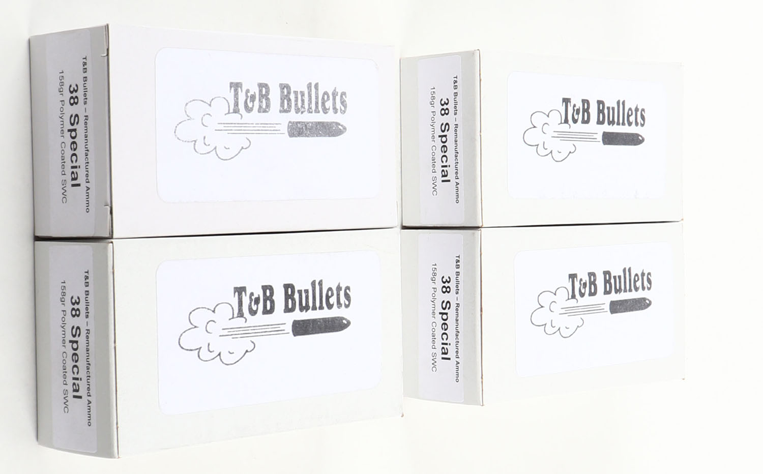 | T&B Bullets, Lot of (4), .38 Special ammo boxes, Remanufactured...