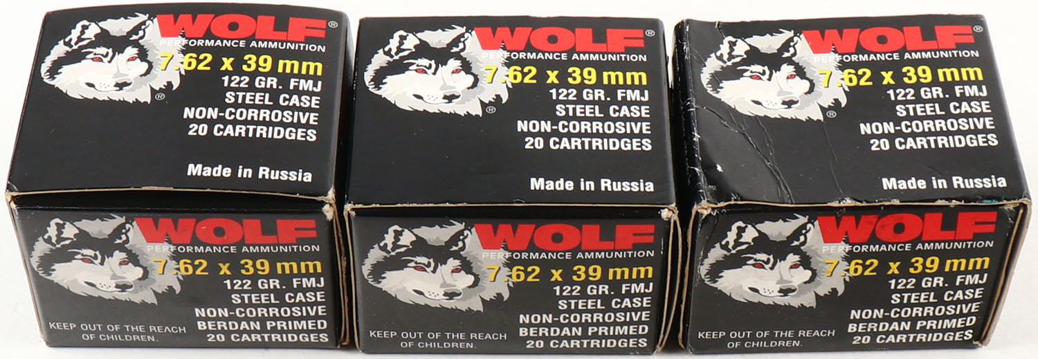 | Wolf, Lot of (3), 7.62x39mm, 122 Grain FMJ Steel Case, Full, 1pc...