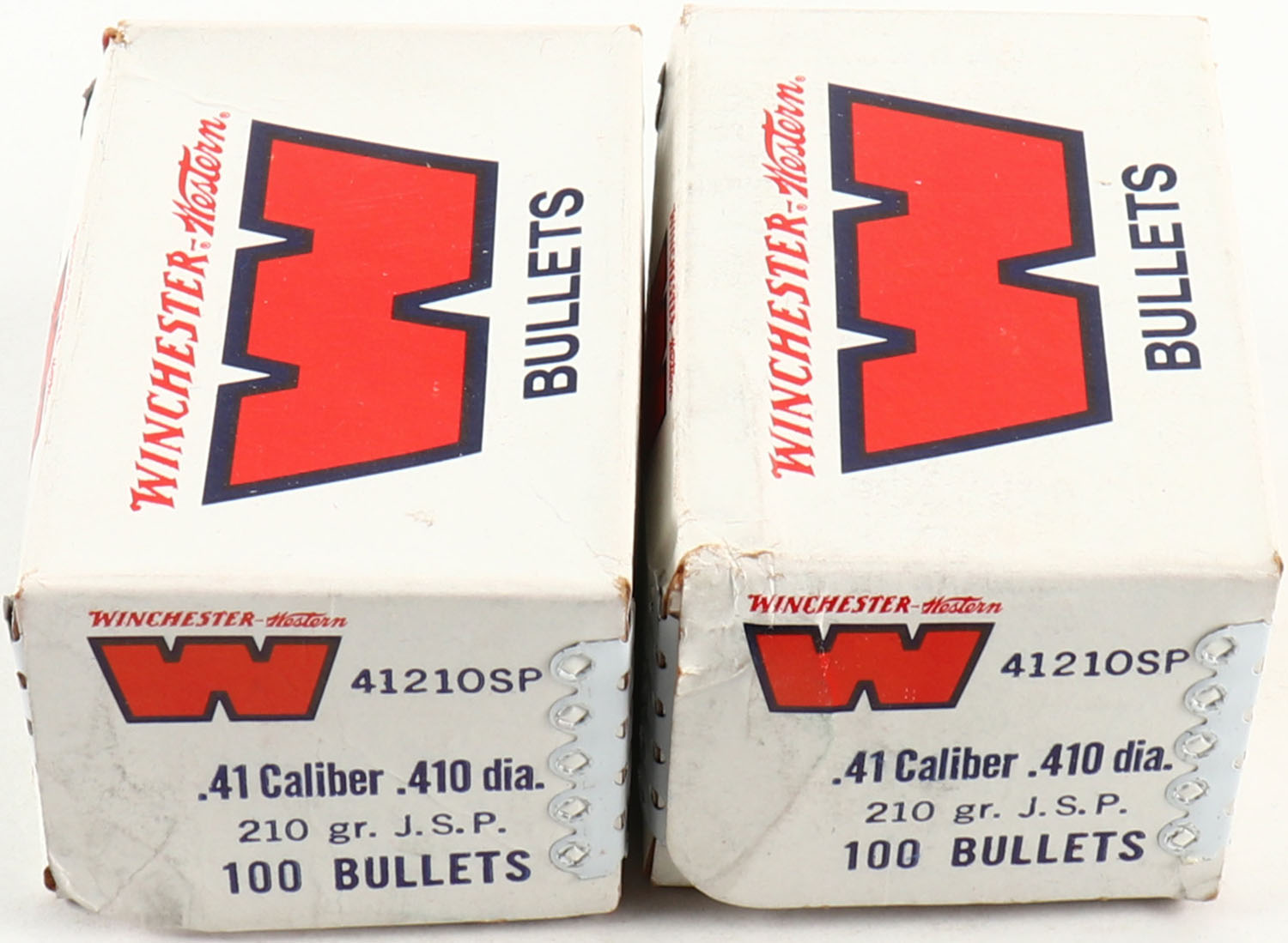 Winchester, Lot of (2), .41 Cal, .410 Diam, 210 Grain JSP, Appears Full, 1pc, boxes have light rub marks, bullets are excellent. Grade: Very Good ++ - Value: 10 to 60
