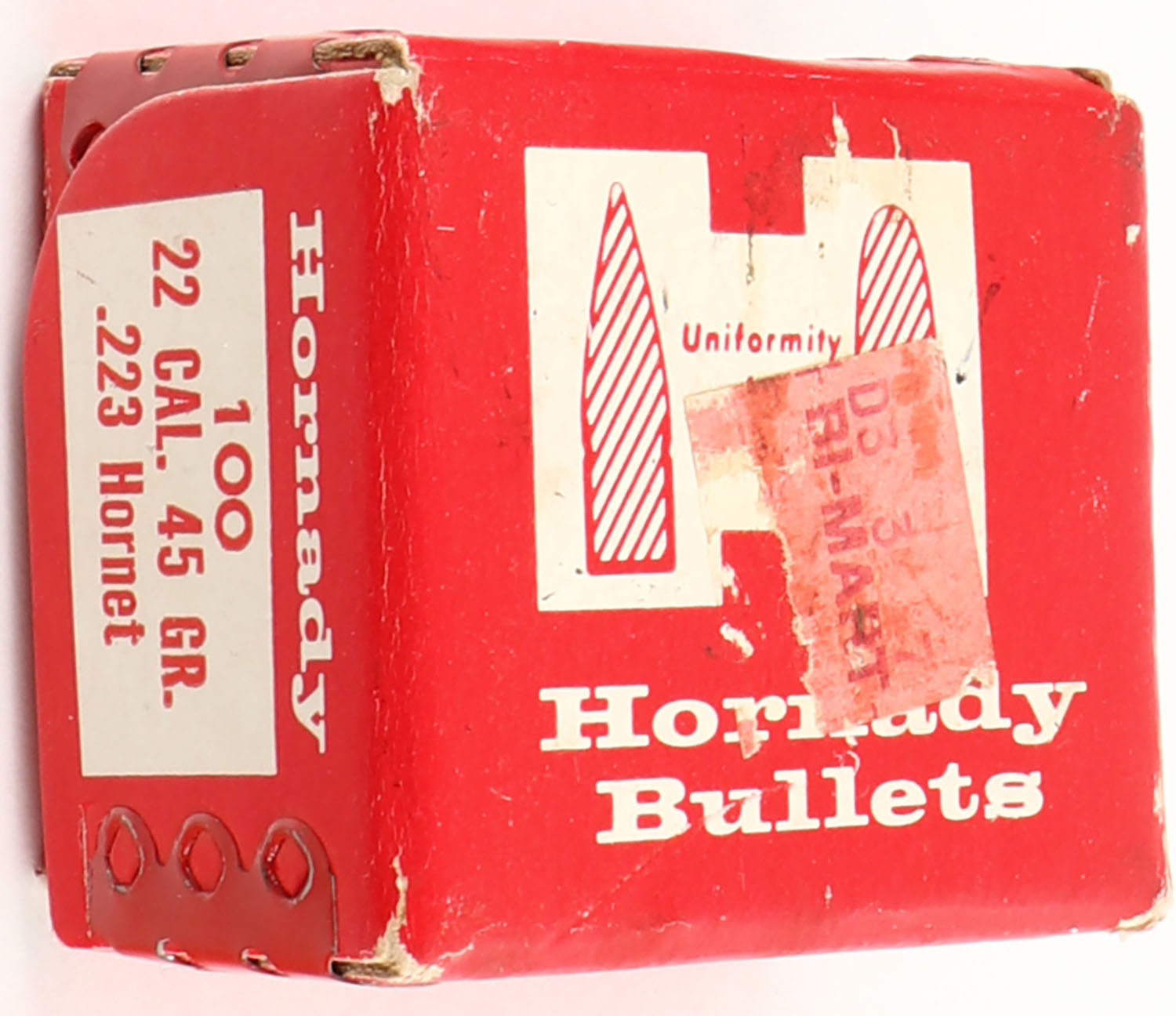 Hornady, .22 Cal., 45 Grain, .223 Hornet, Full with Insert, 1pc, Red & white box, box is solid, bullets are minty. Grade: Excellent - Value: 10 to 40