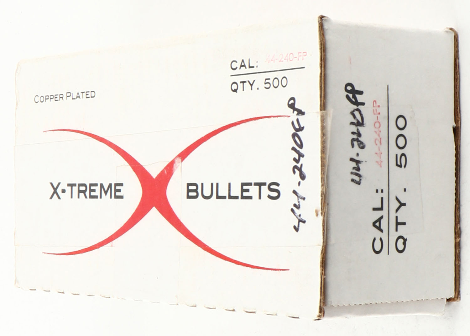Large lot of X-TREME Bullets, 44 Cal, 240 gr, FP, box appears full and displays 500 ct. Grade: Mint - Value: 20 to 100