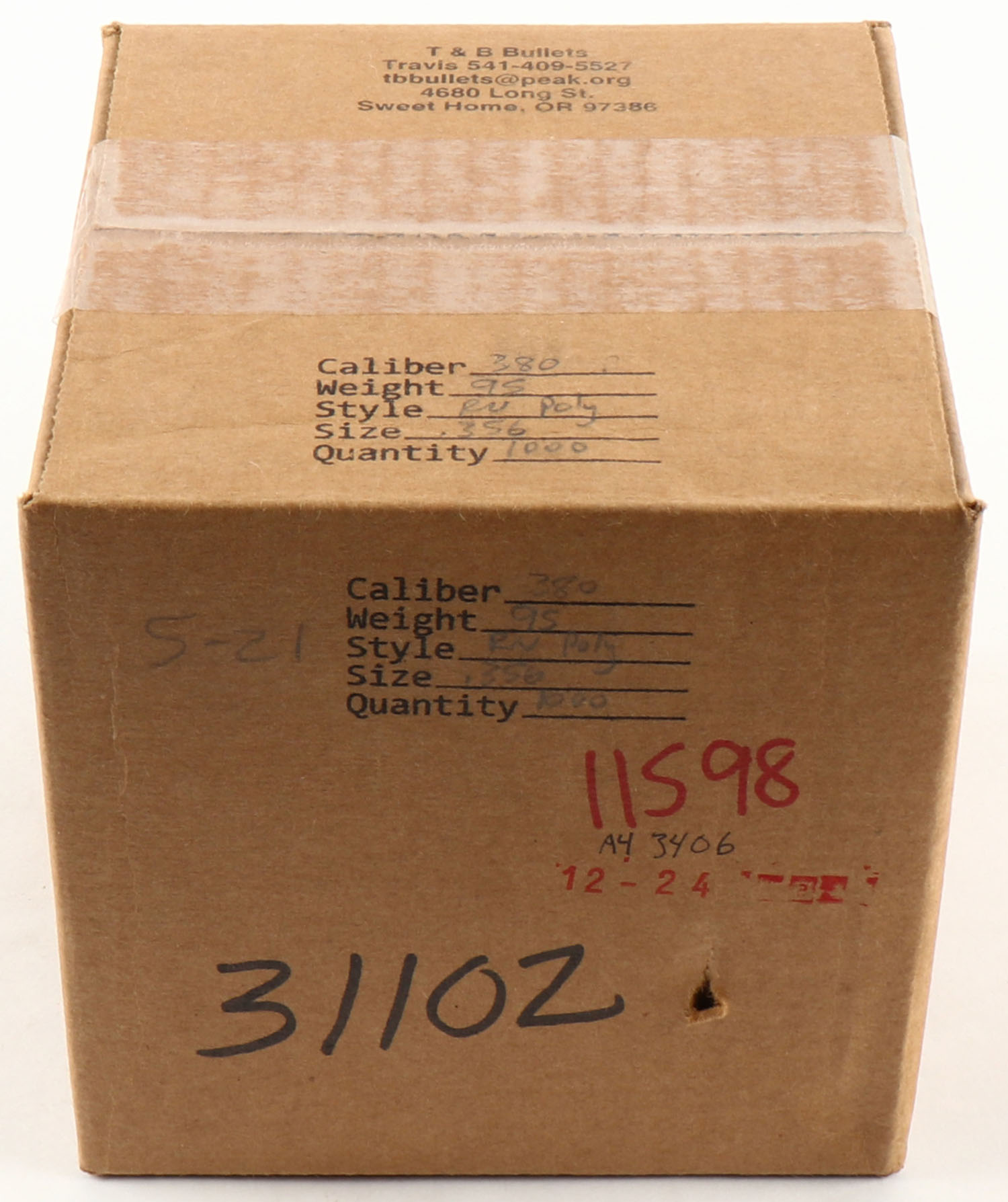 (1) Factory sealed box 380 (.356), 95 gr, RN Poly, T & B Bullets, 1000 ct. Grade: Mint - Value: 20 to 60