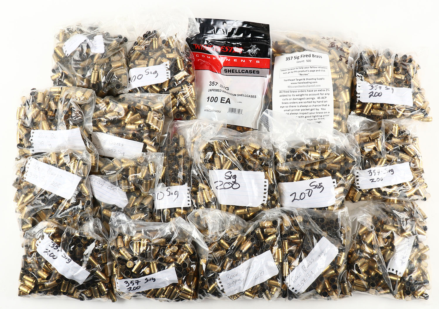 | Large Lot of 357 SIG, mostly Fired Brass with one package of New...