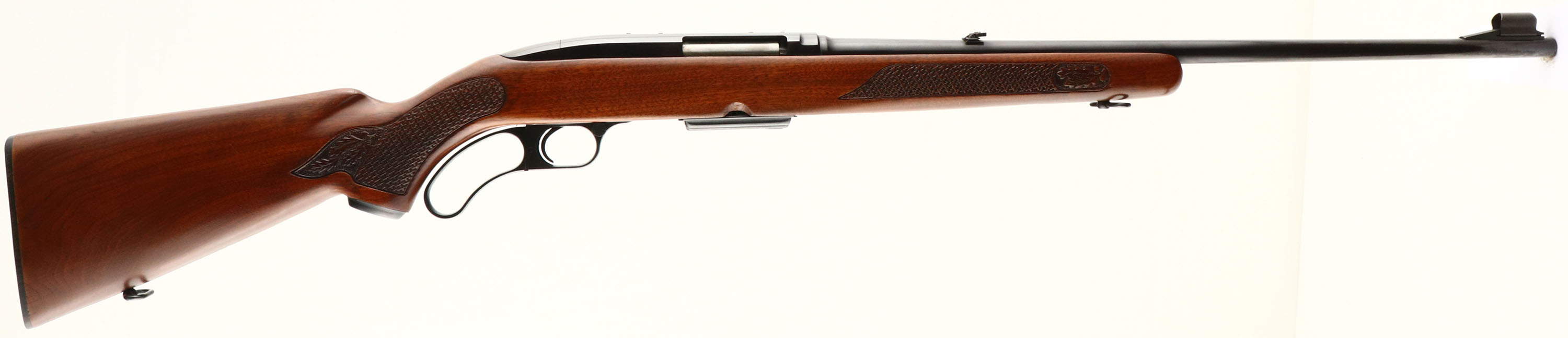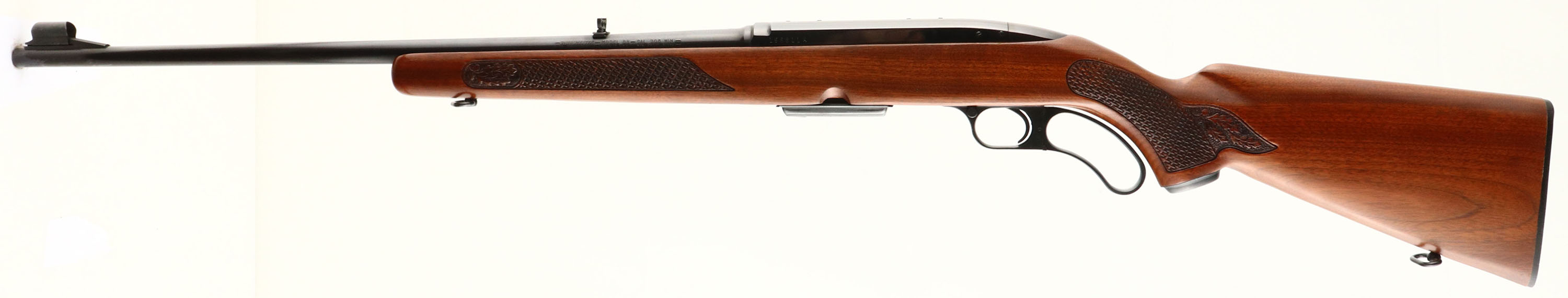 Winchester Model 88, CAL: 308 WIN, MFG: 1964, SN: 155811A, Lever Action Rifle, 22'' barrel. The original checkered & capped pistol grip wood stock is excellent. It displays almost no handling marks to the excellent original finish. The original metal blue finish is toning plum, with a 98% coverage. Bore is excellent. The barrel holds the original flip-up rear sight & a hooded ramp front sight. Stock carries a the original checkered buttplate. Factory sling swivels. Excellent overall & extremely collectible in this high original condition. FFL or C&R Req - Value: 1200 to 2500